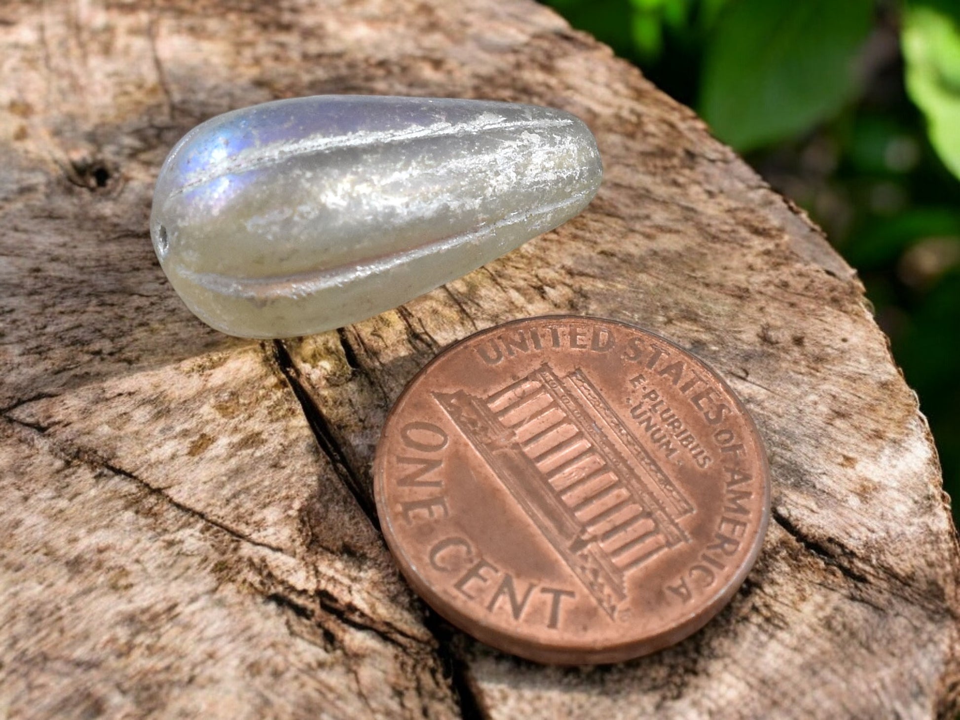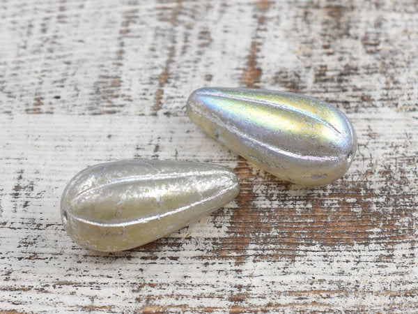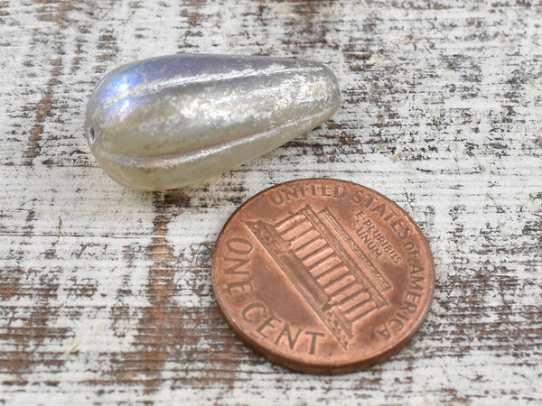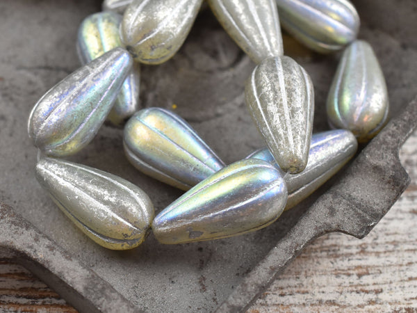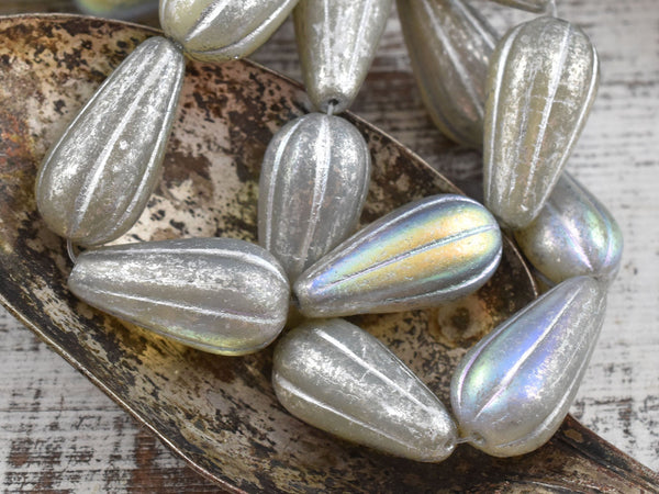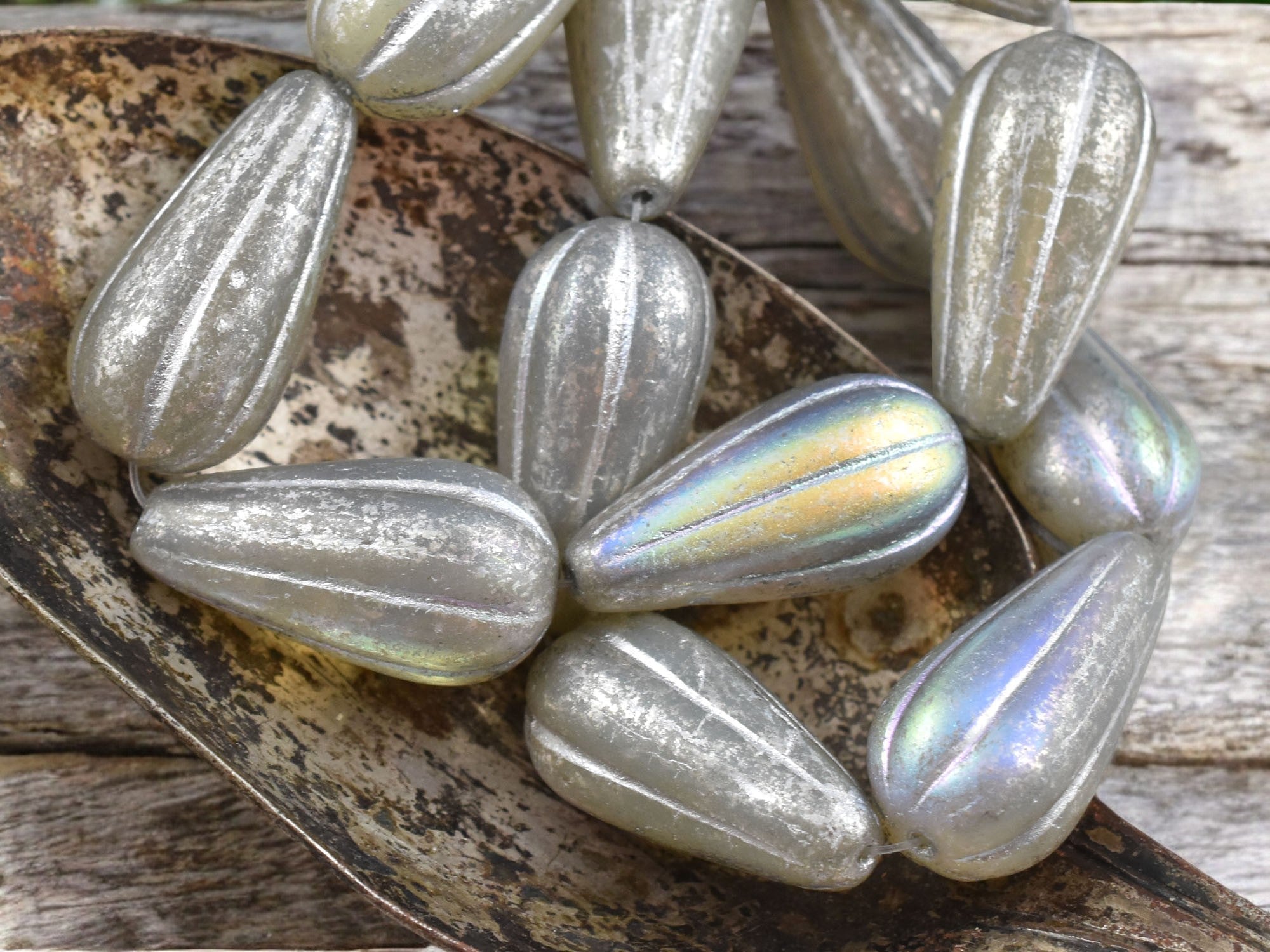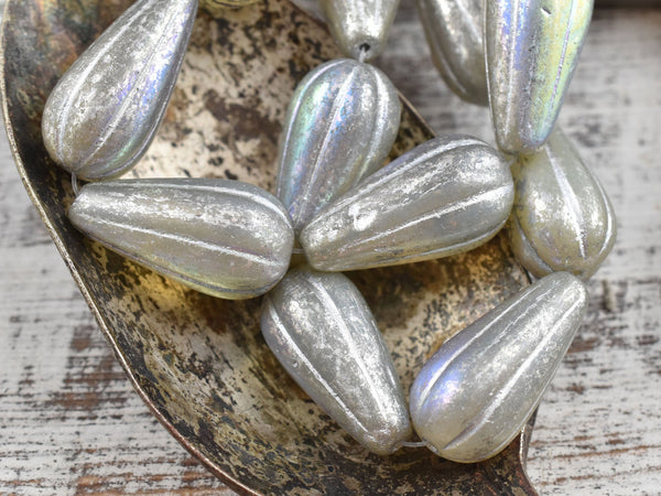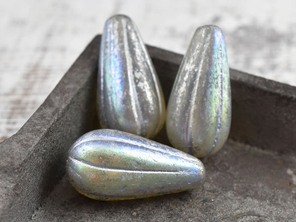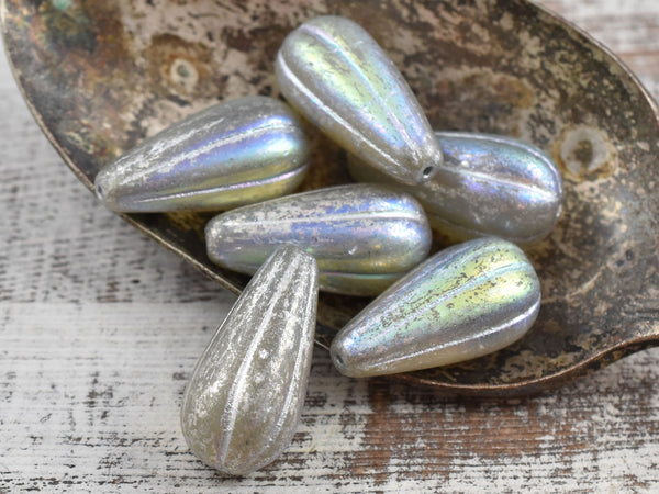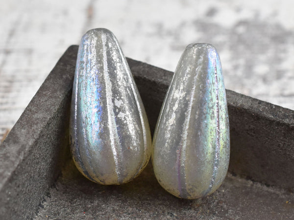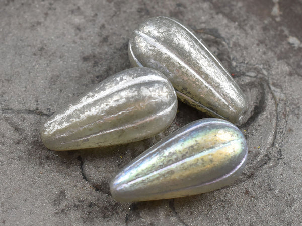 *6* 22x11mm Silver Mercury Washed Grey Opaline AB Melon Drop Beads