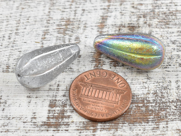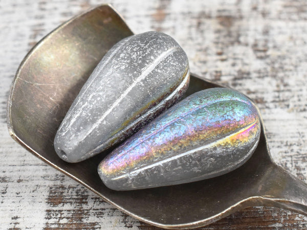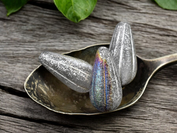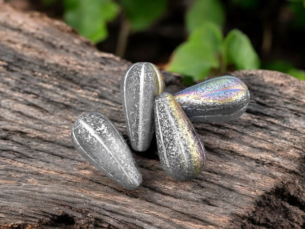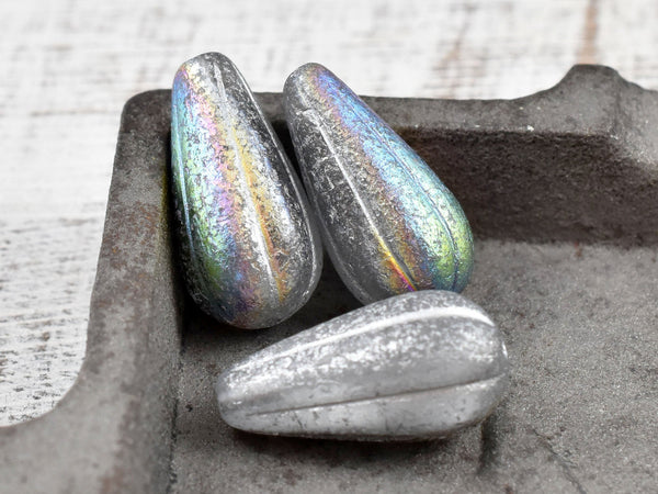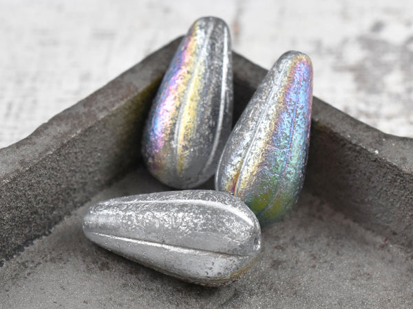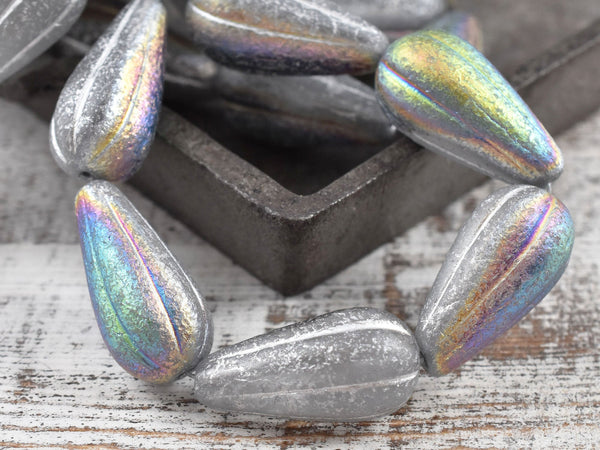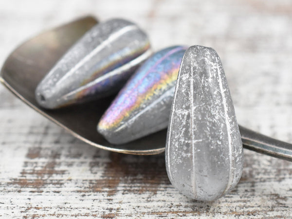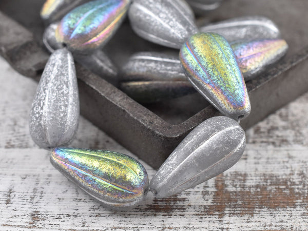 *6* 22x11mm Silver Washed Etched Crystal AB Melon Drop Beads