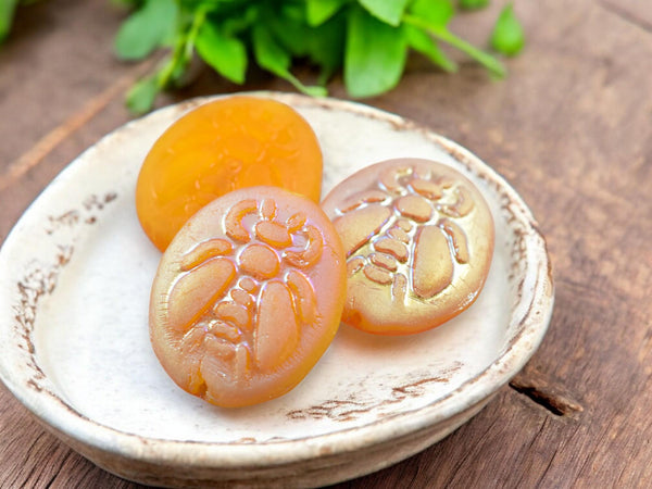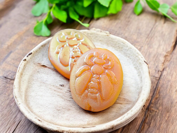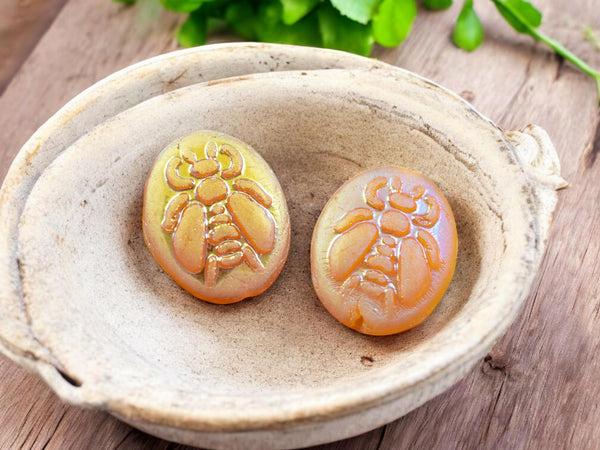 ♥ Type/Shape: Czech glass oval beads with bumble bee design (both sides)