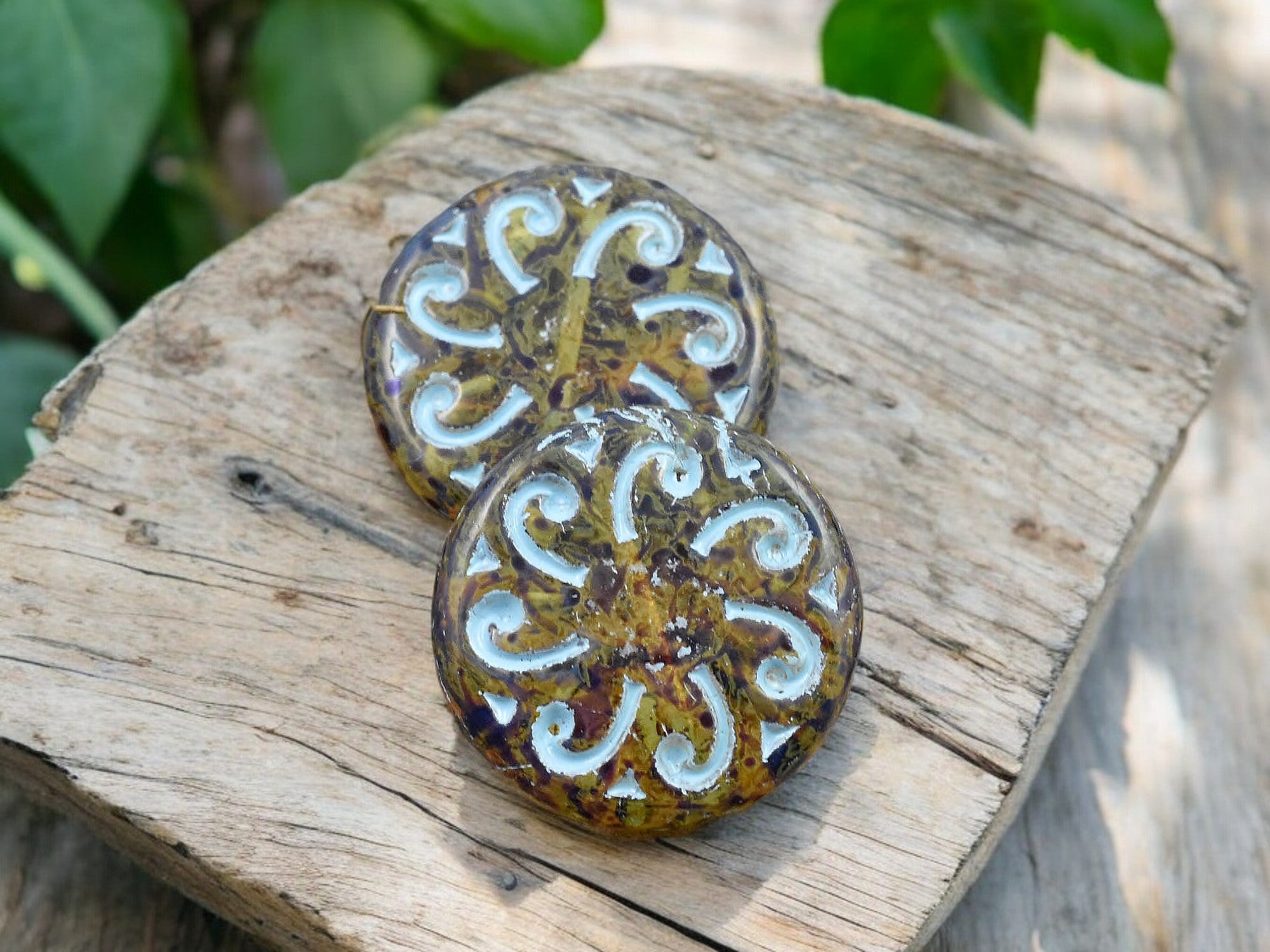 ♥ Type/Shape: Czech pressed glass sun wheel coin focal beads