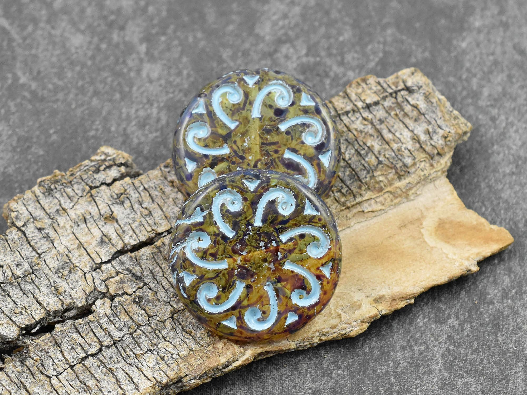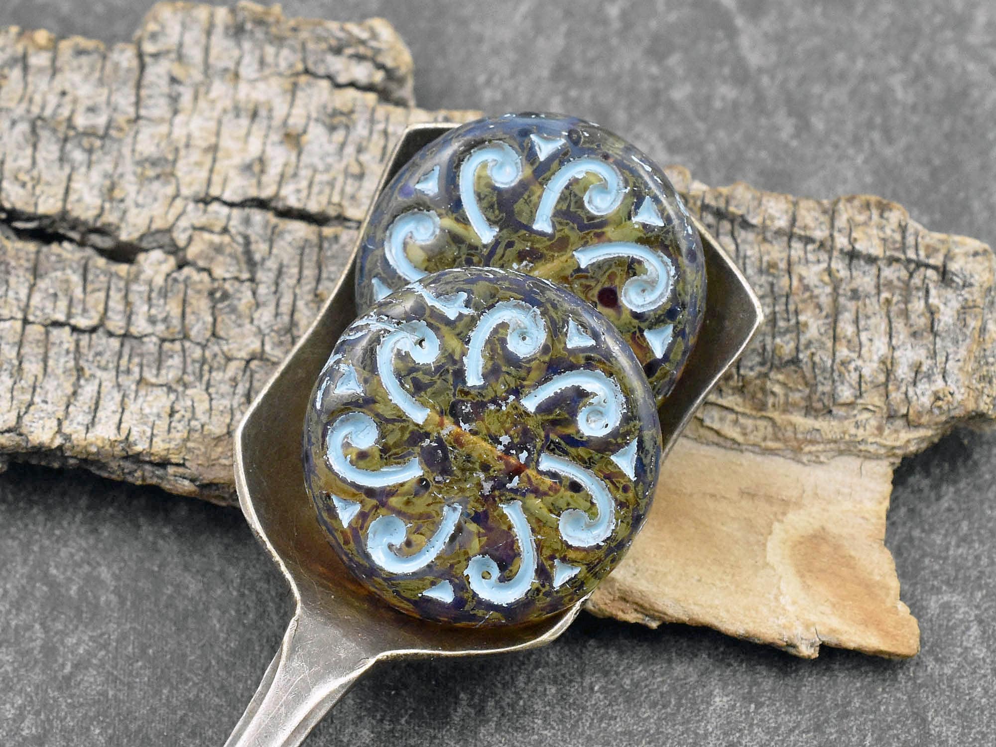*2* 23mm Turquoise Washed Topaz Picasso Sun Coin Beads