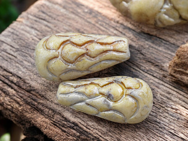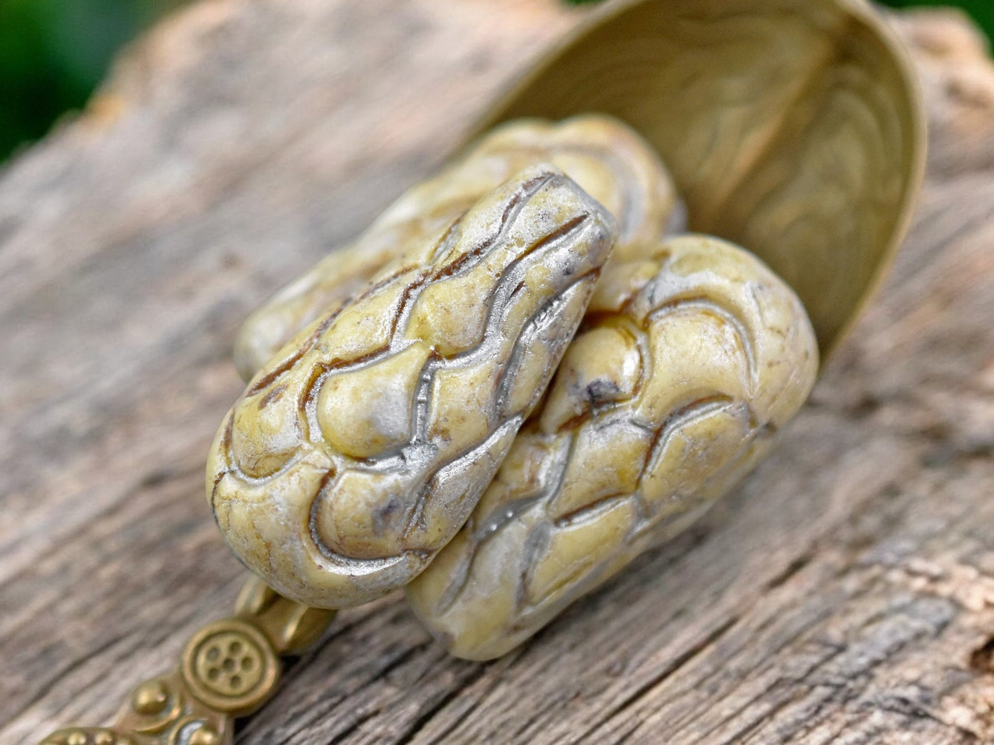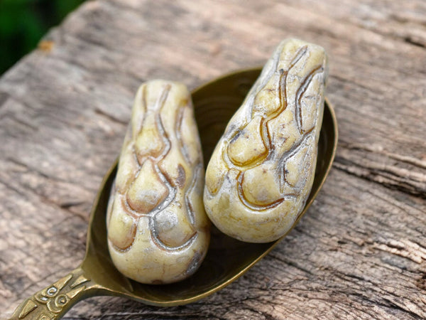 *6* 25x12mm Champagne Alabster Mermaid Scale Large Drop Beads