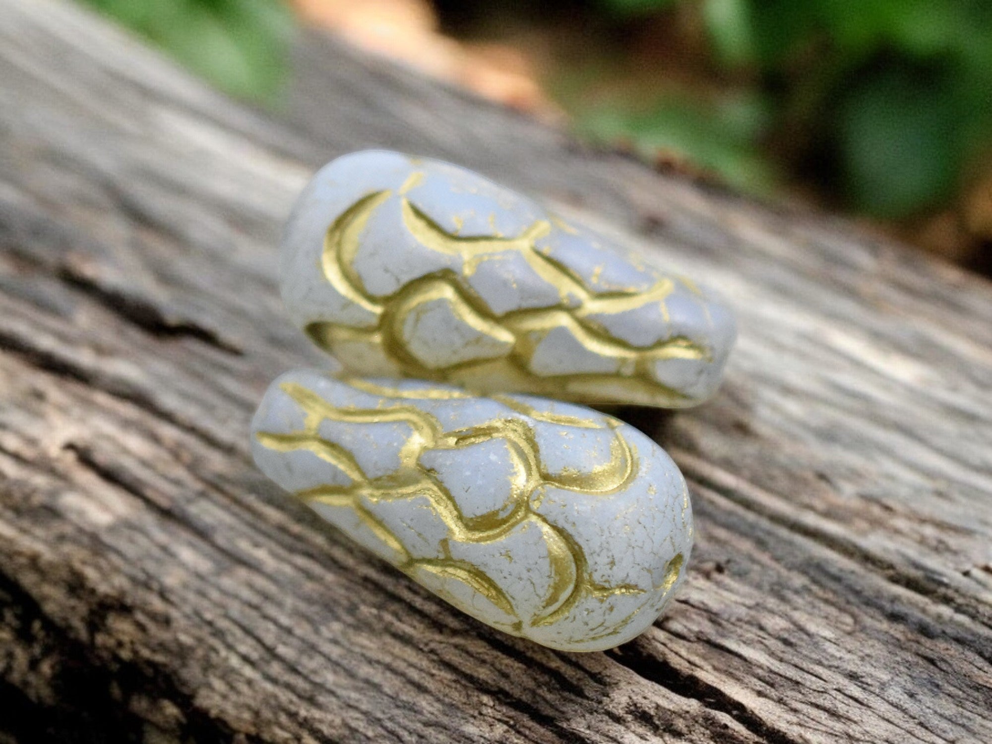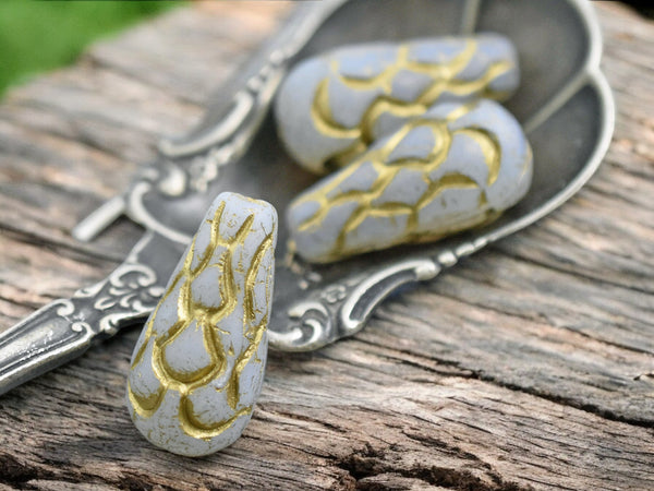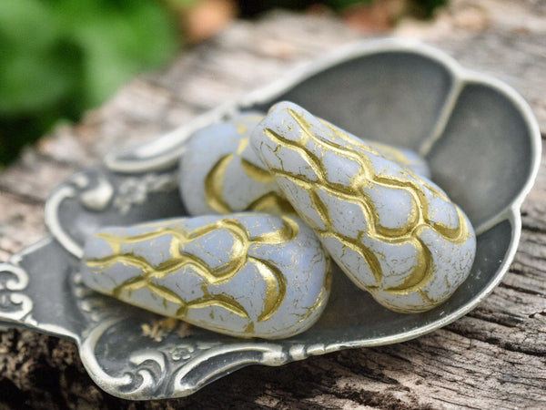 *6* 25x12mm Gold Washed Grey Opal Silk Mermaid Scale Large Drop Beads
