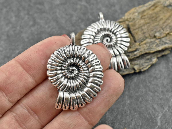 *2* 37x27mm Antique Silver Nautilus Pendants