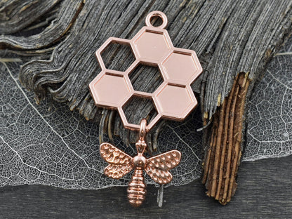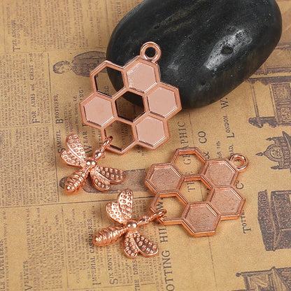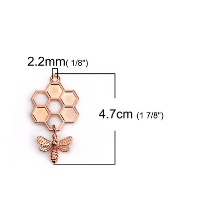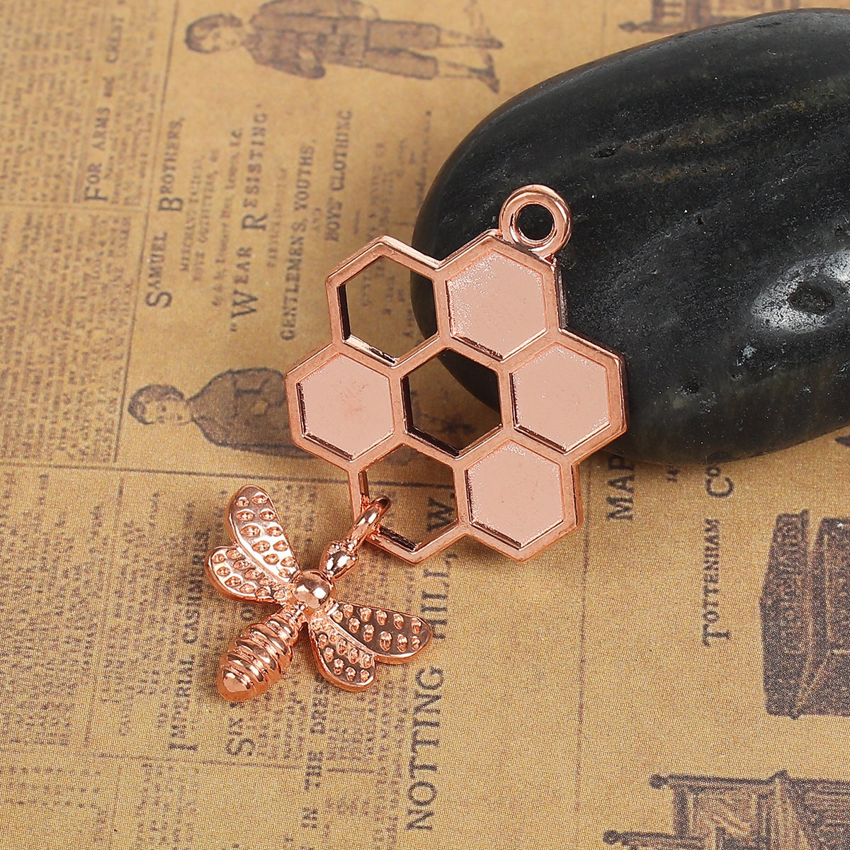 *5* 46x24mm Rose Gold Bee Honeycomb Charms