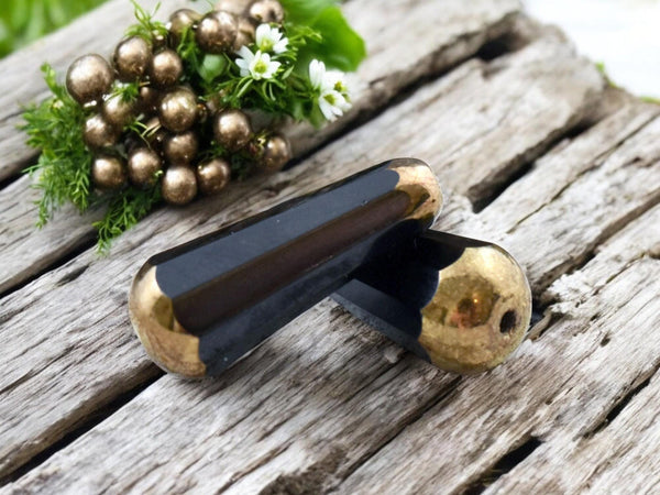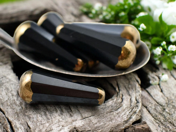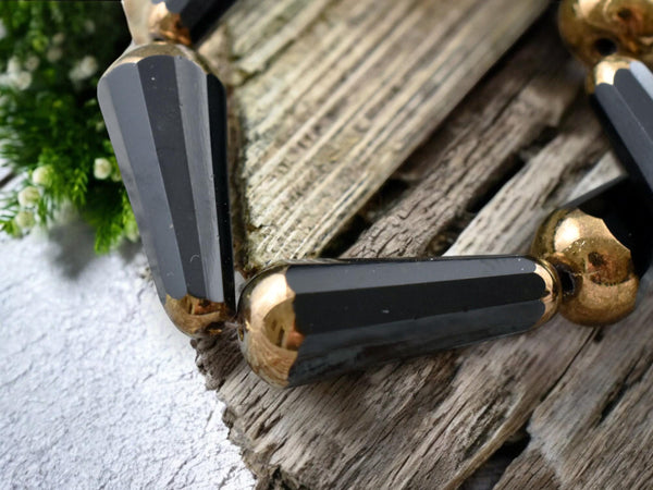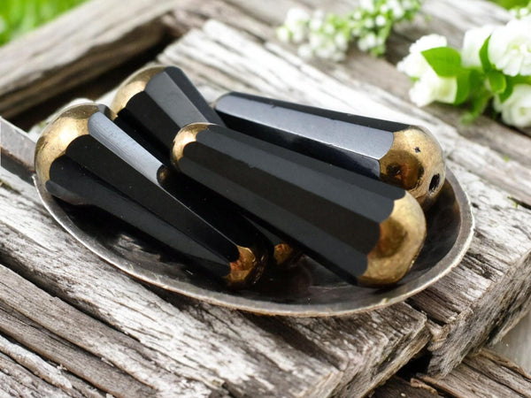 *6* 8x20mm Bronze Tipped Jet Black Faceted Drop Beads