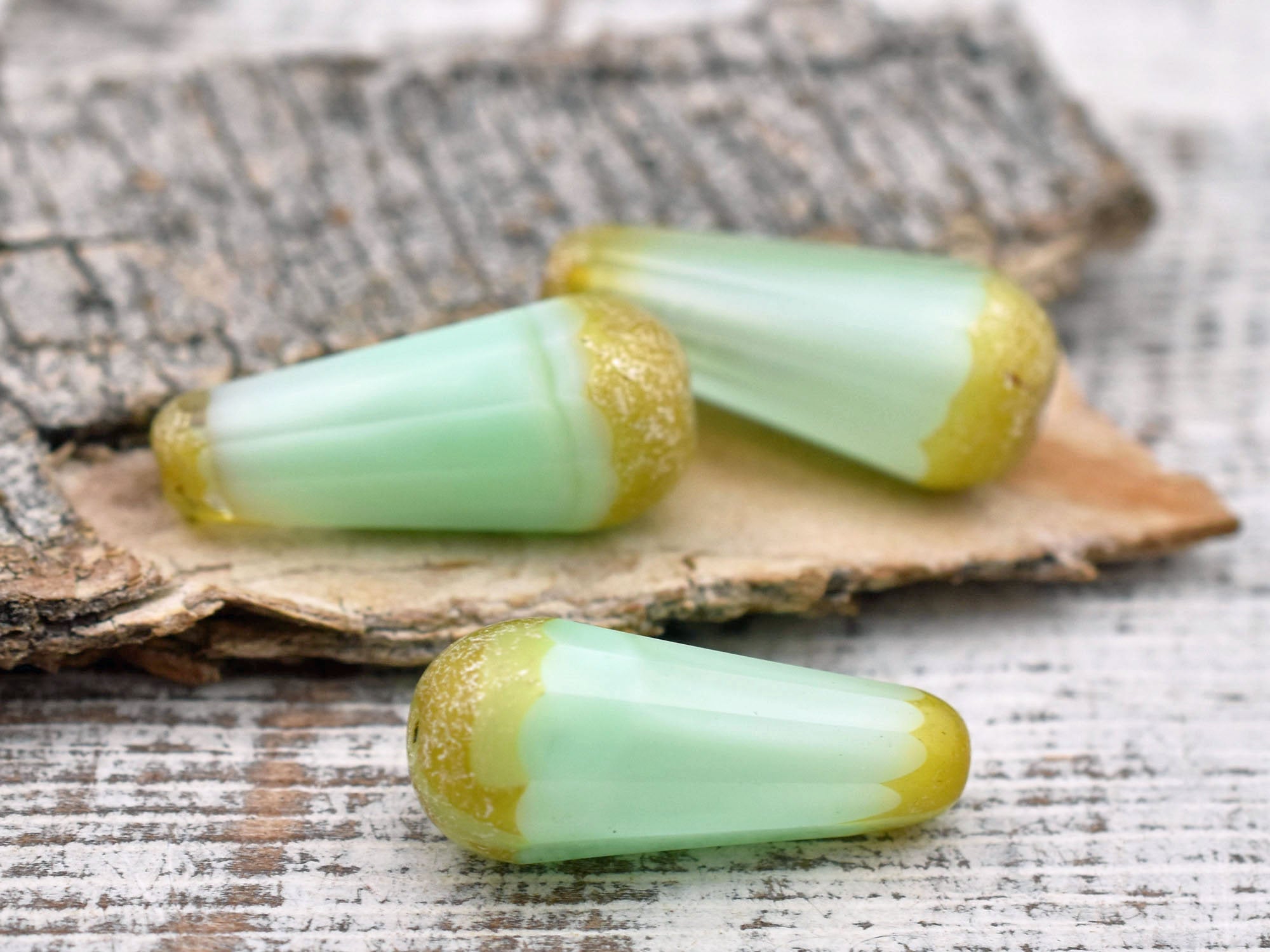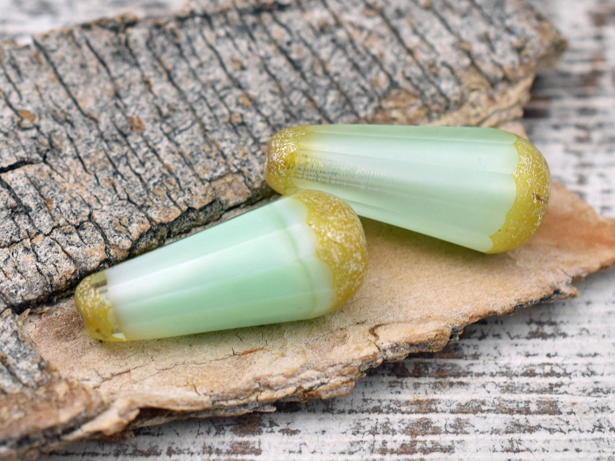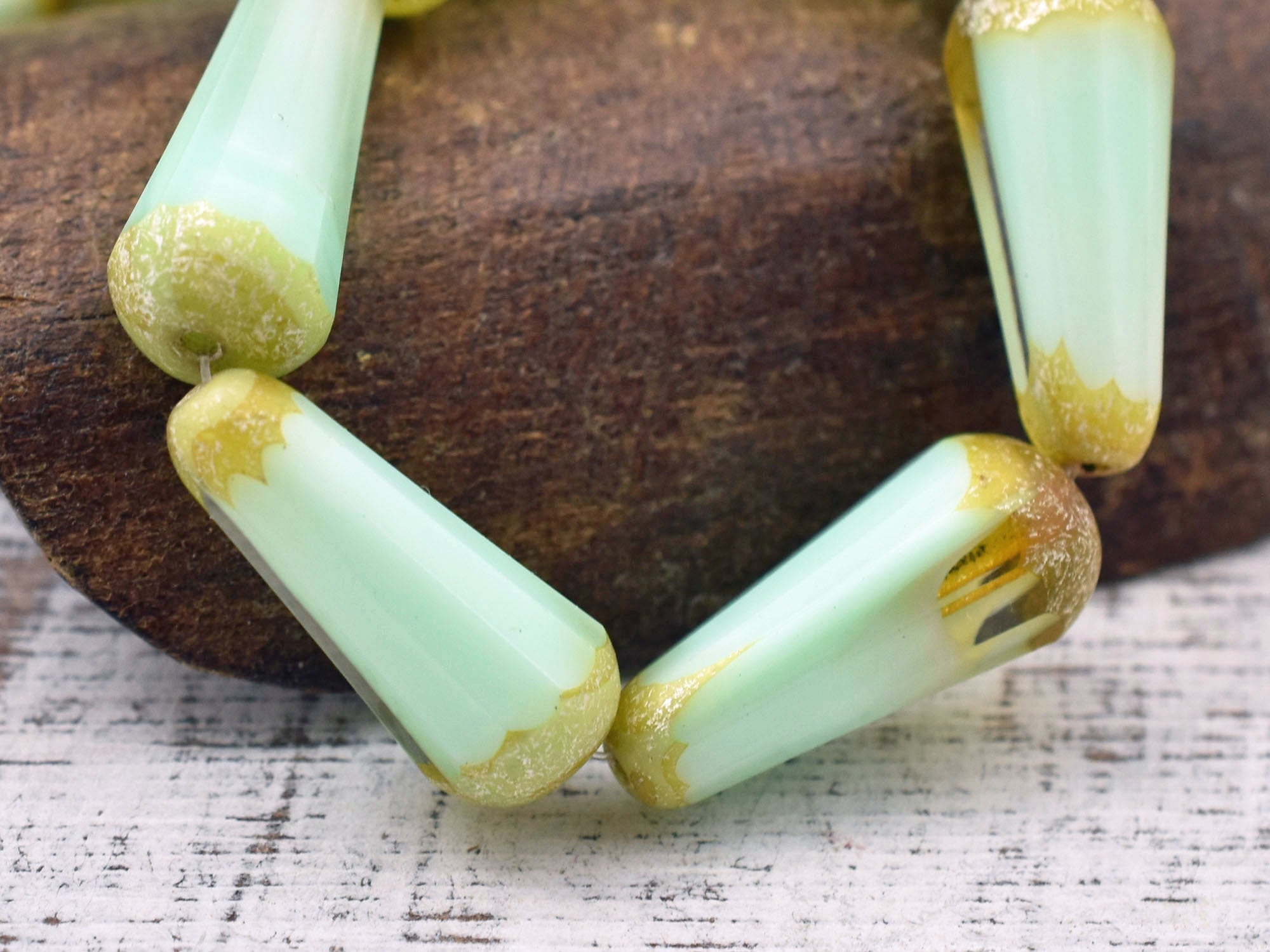 *2* 9x20mm Seafoam Crystal Picasso Faceted Drop Beads
