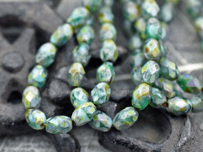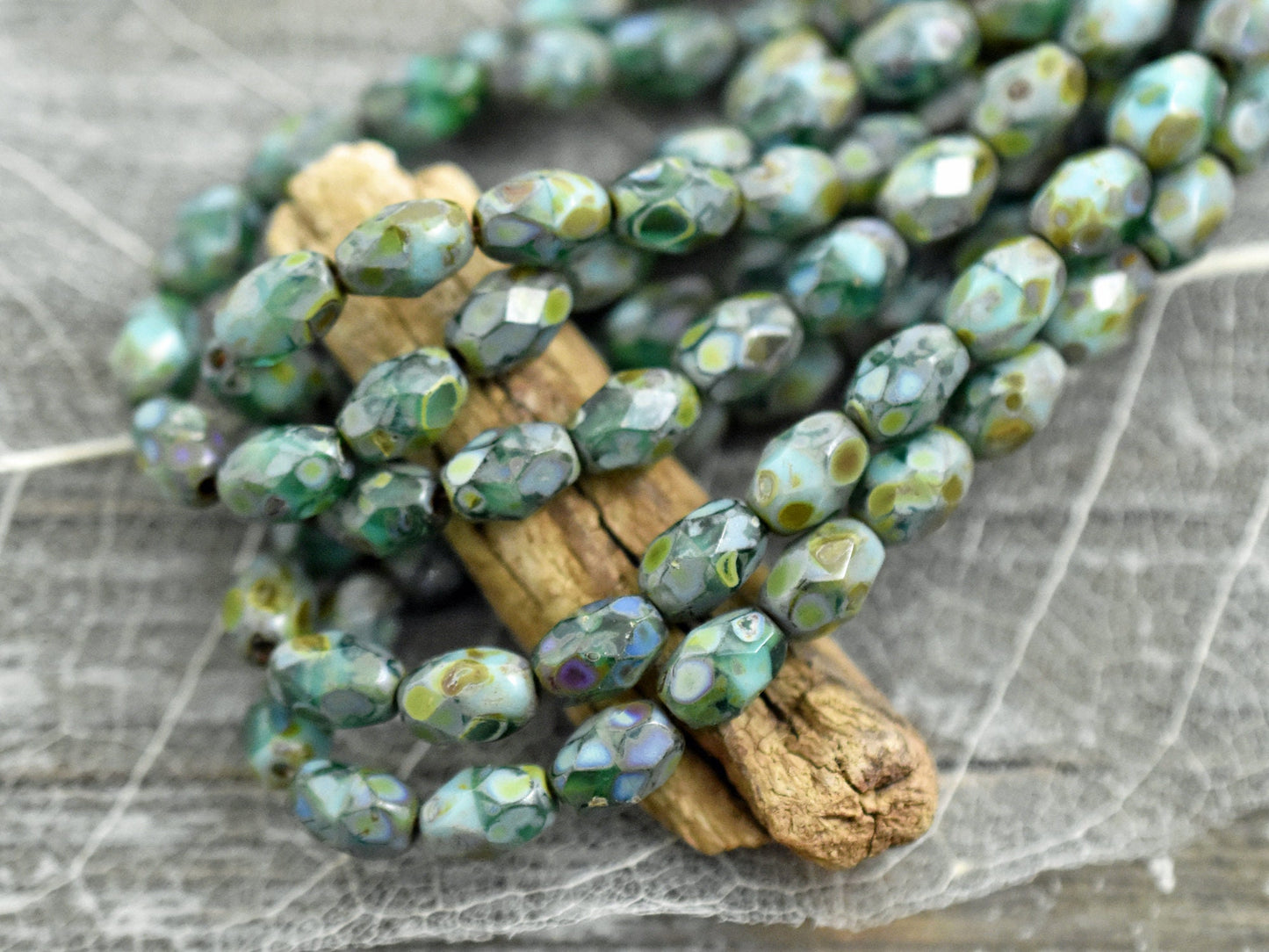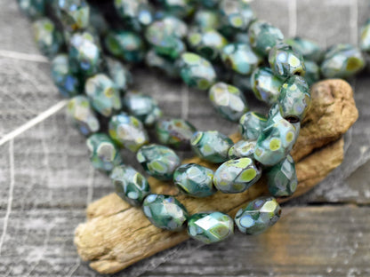 *20* 5x7mm Blended Turquoise Picasso Fire Polished Faceted Oval Beads
