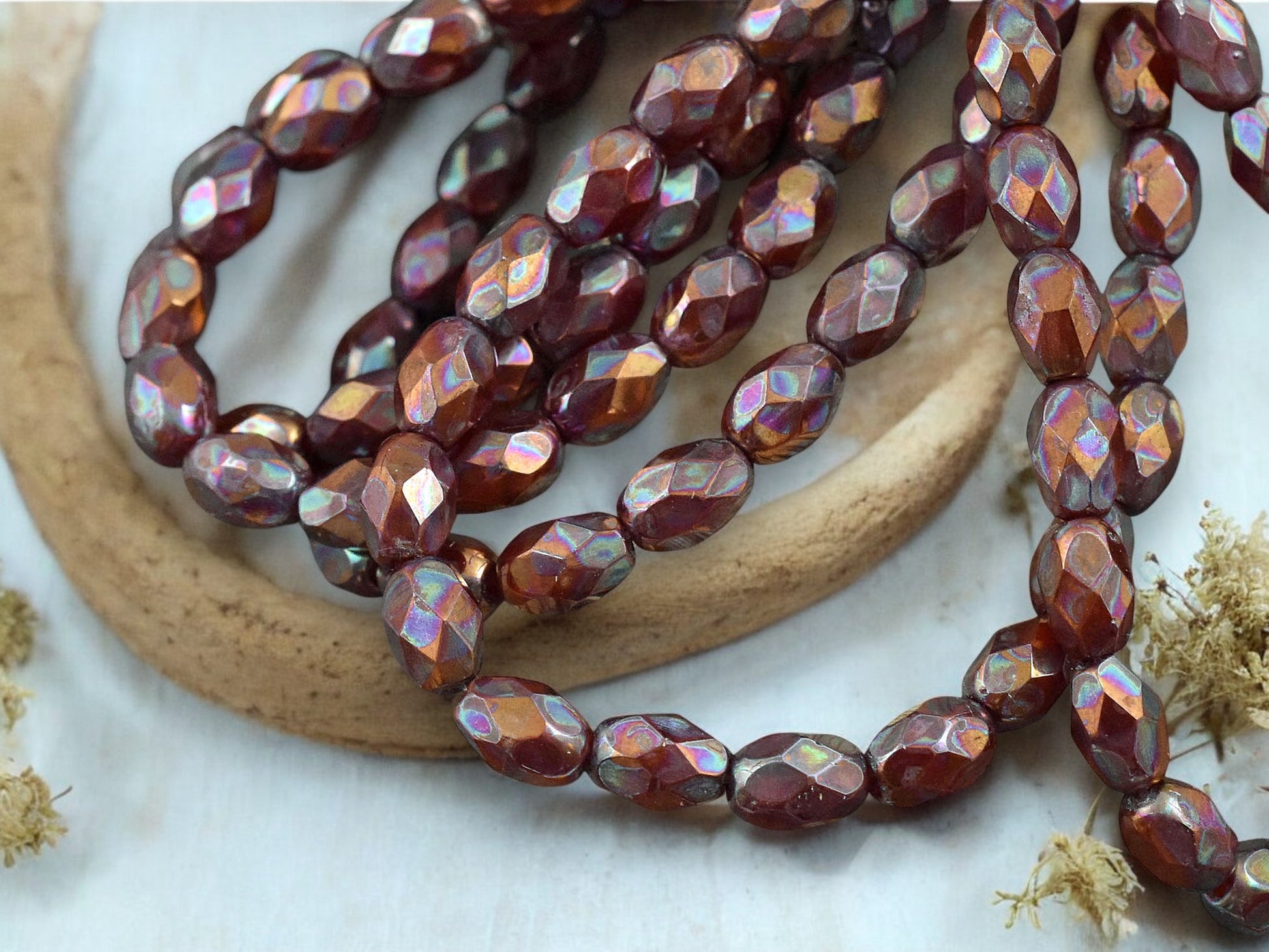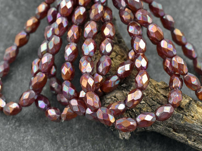 *20* 5x7mm Bronze AB Washed Burnt Orange Fire Polished Faceted Oval Beads