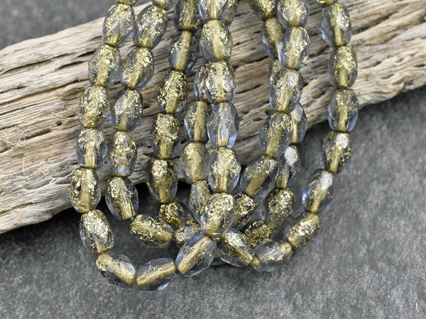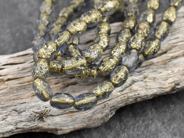 *20* 5x7mm Gold Washed Etched Translucent Montana Blue Fire Polished Faceted Oval Beads