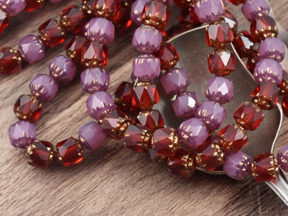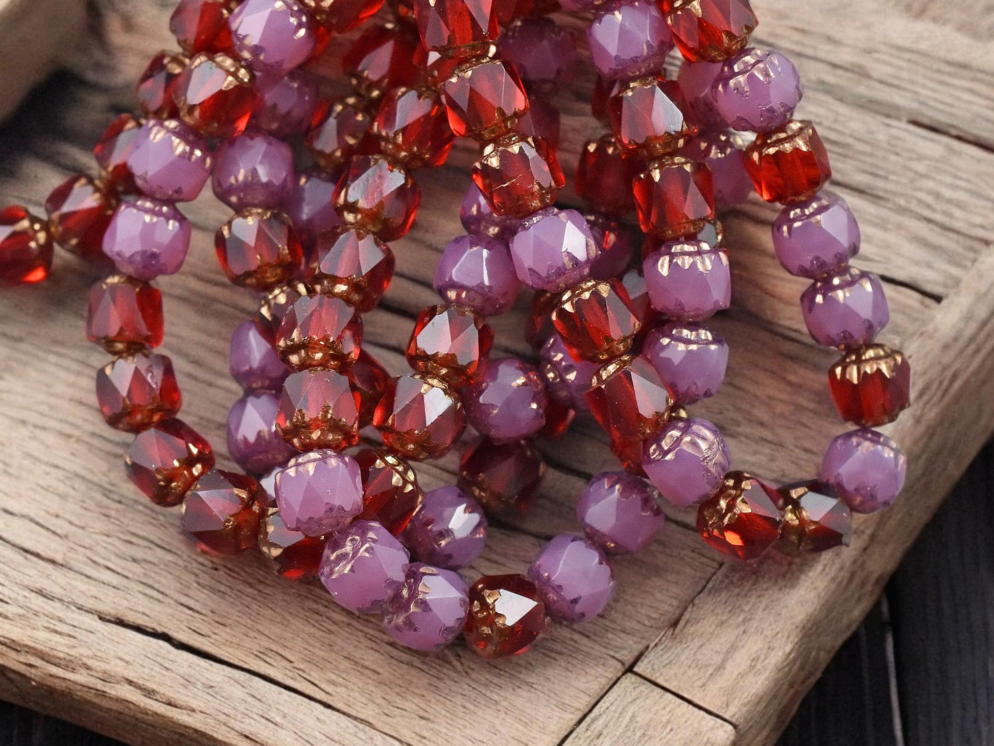 *20* 6mm Bronze Washed Mixed Pink Opal and Ruby Red Fire Polished Cathedral Beads