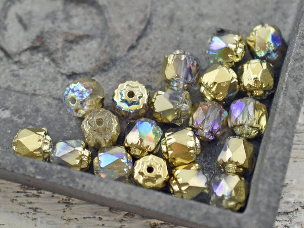 Gold Washed Crystal AB Fire Polished Cathedral Beads - Choose Your Size