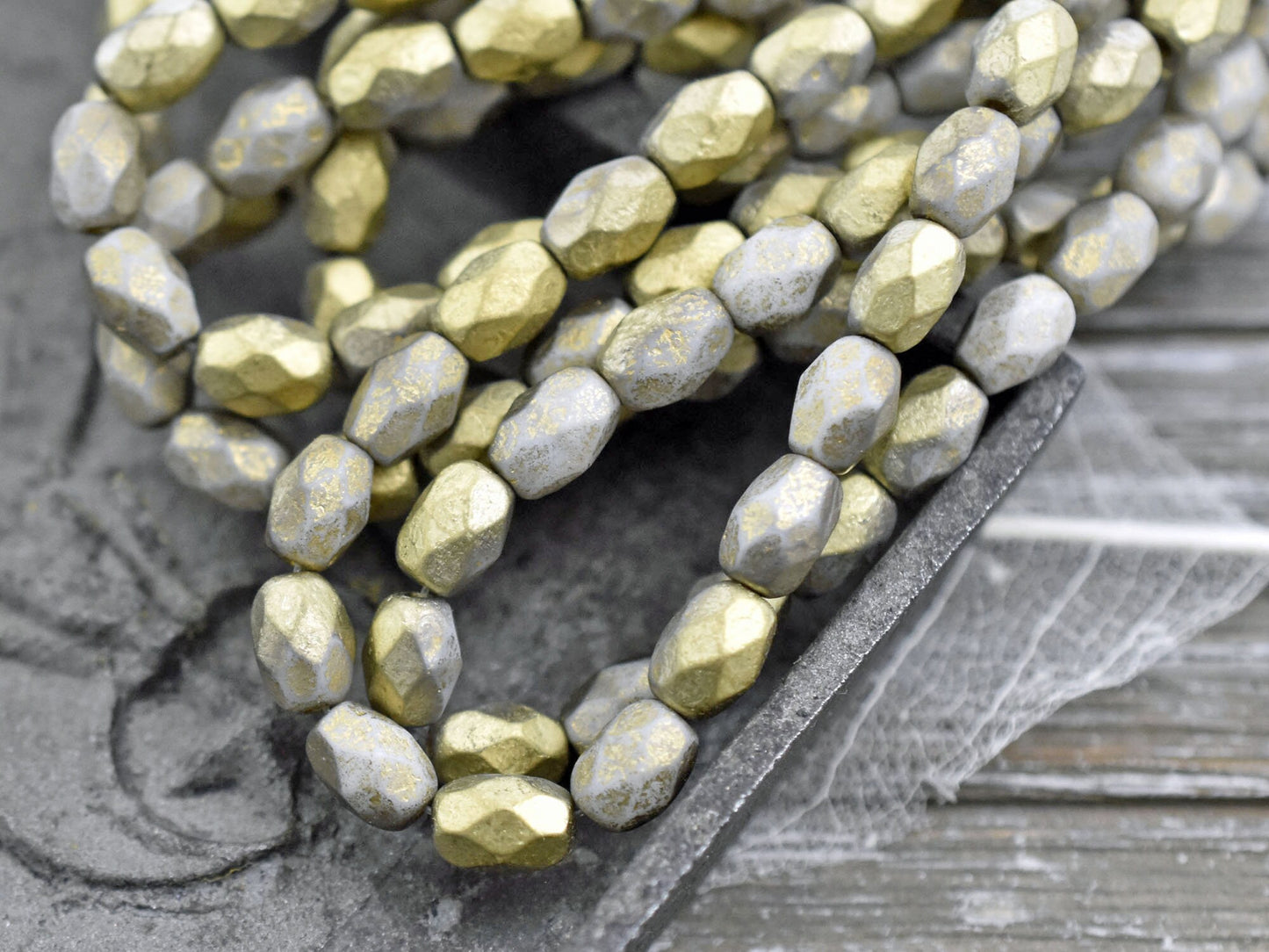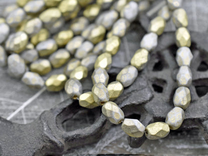 *20* 6x8mm Gold Washed Etched Ash Grey Faceted Oval Beads