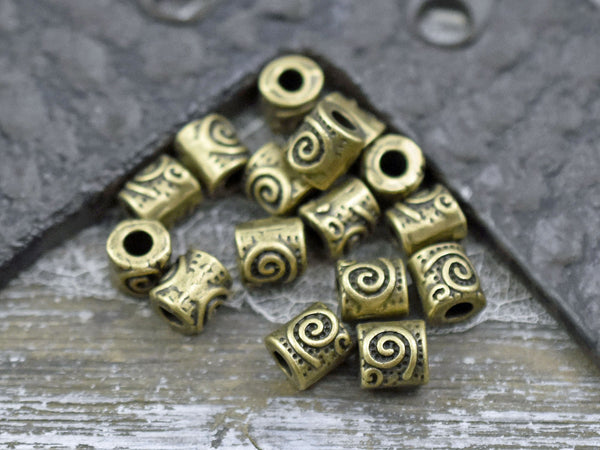 *50* 7x6mm Antique Bronze Spiral Design Barrel Beads