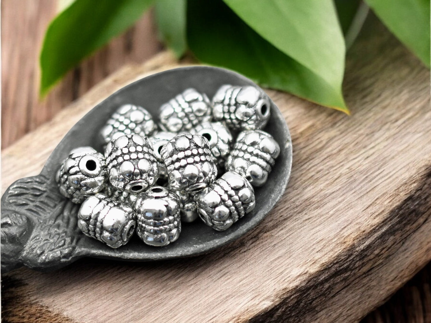 *50* 7x8mm Antique Silver Barrel Spacer Beads