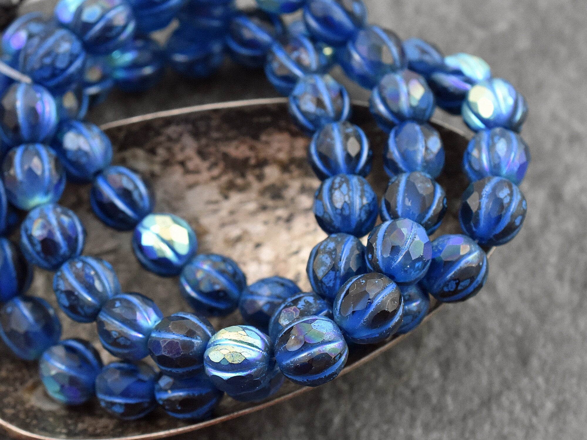 *20* 8mm Blue Washed Matte Sapphire AB Faceted Round Melon Beads
