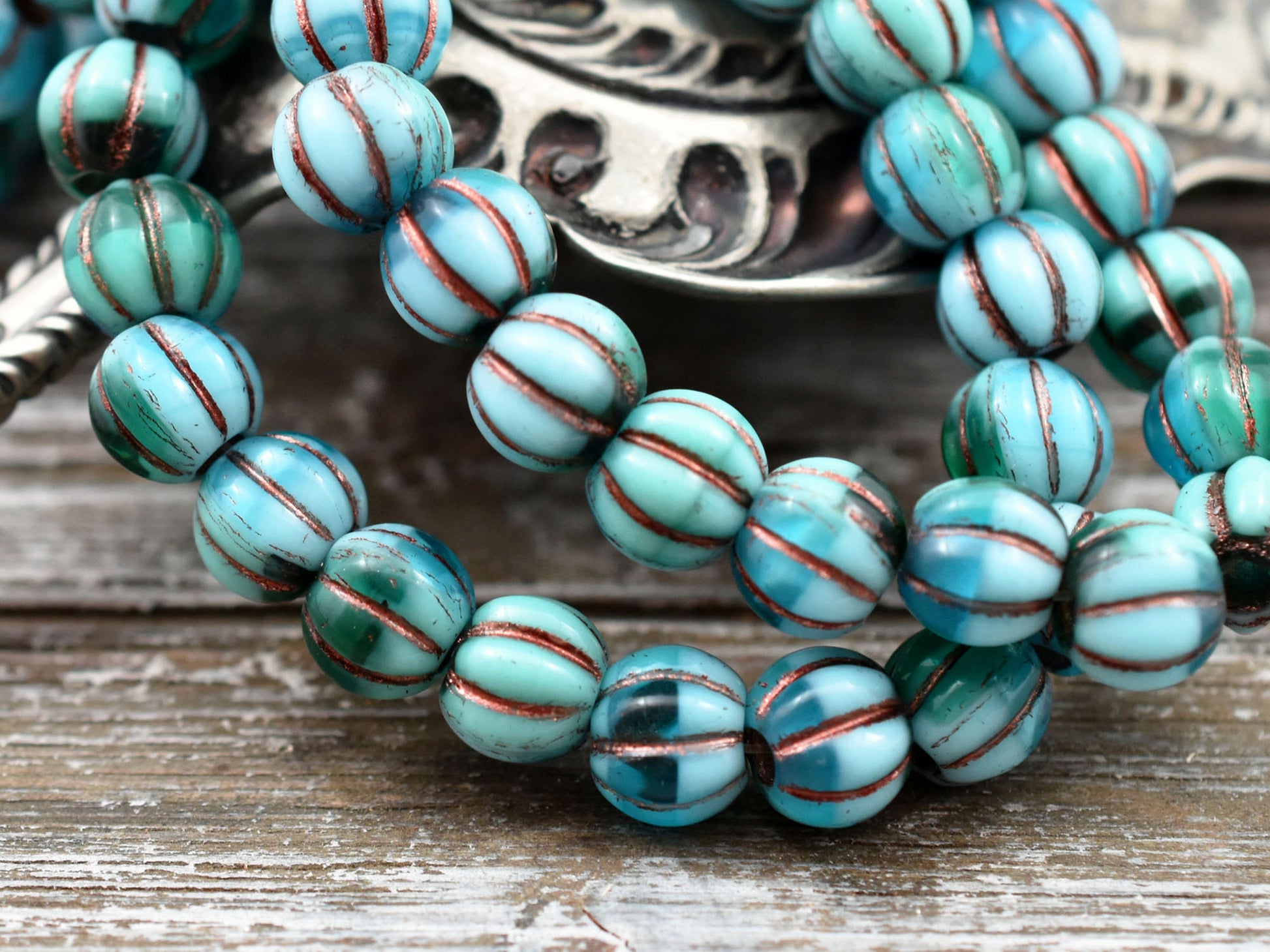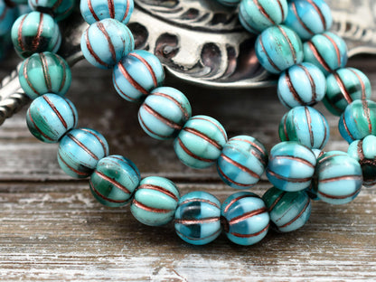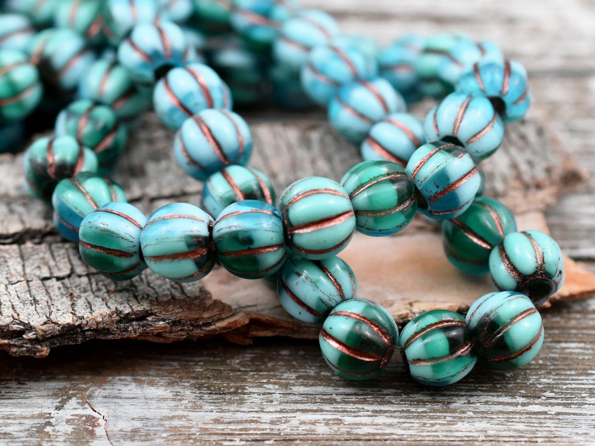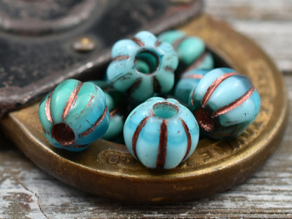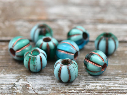 *20* 8mm Bronze Washed Tropical Sea Large Hole Melon Beads
