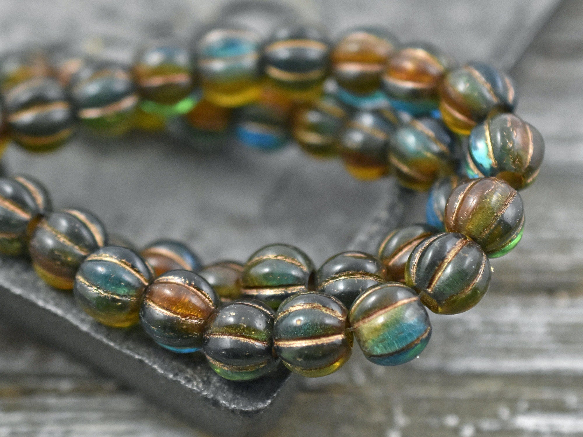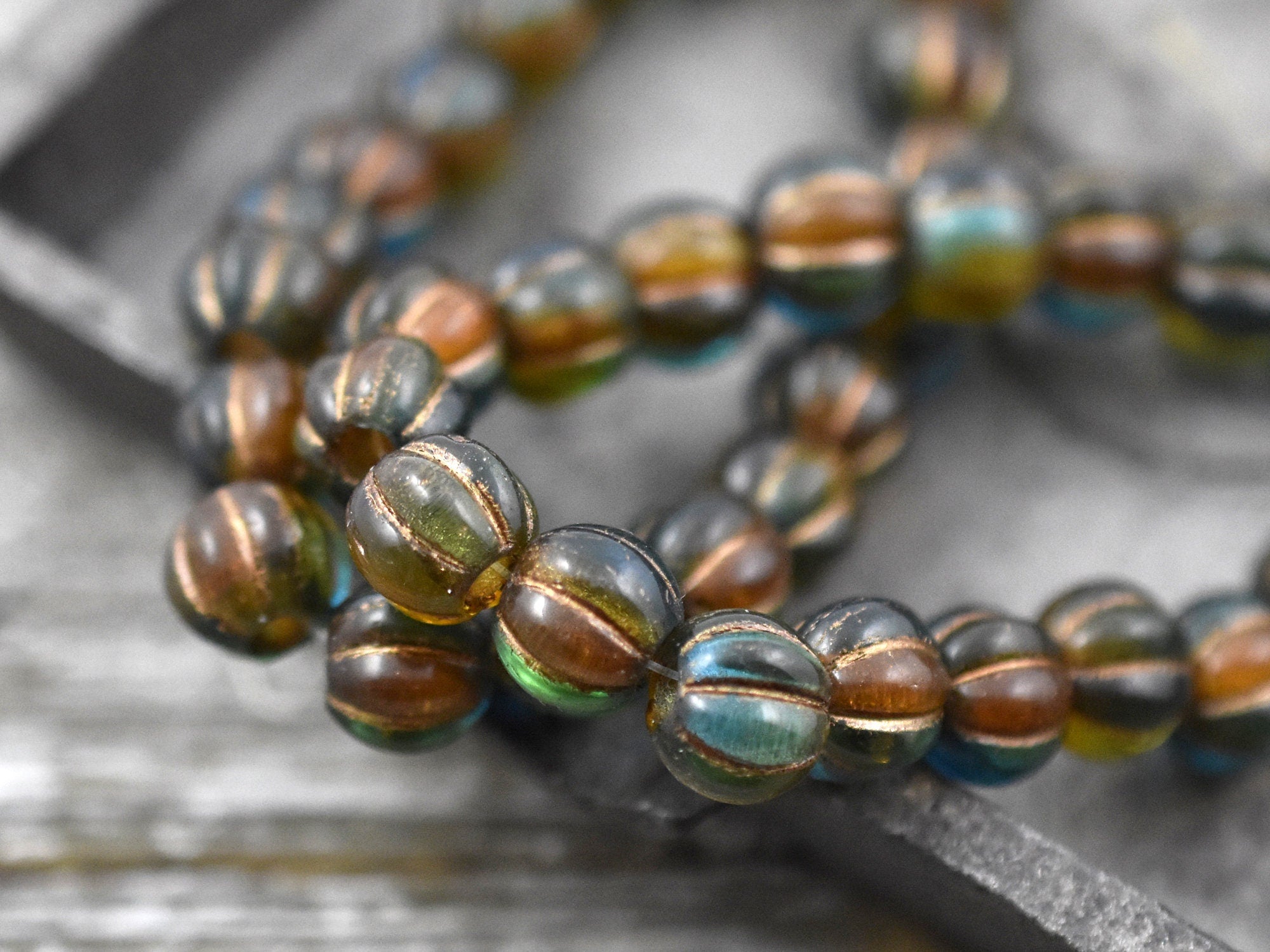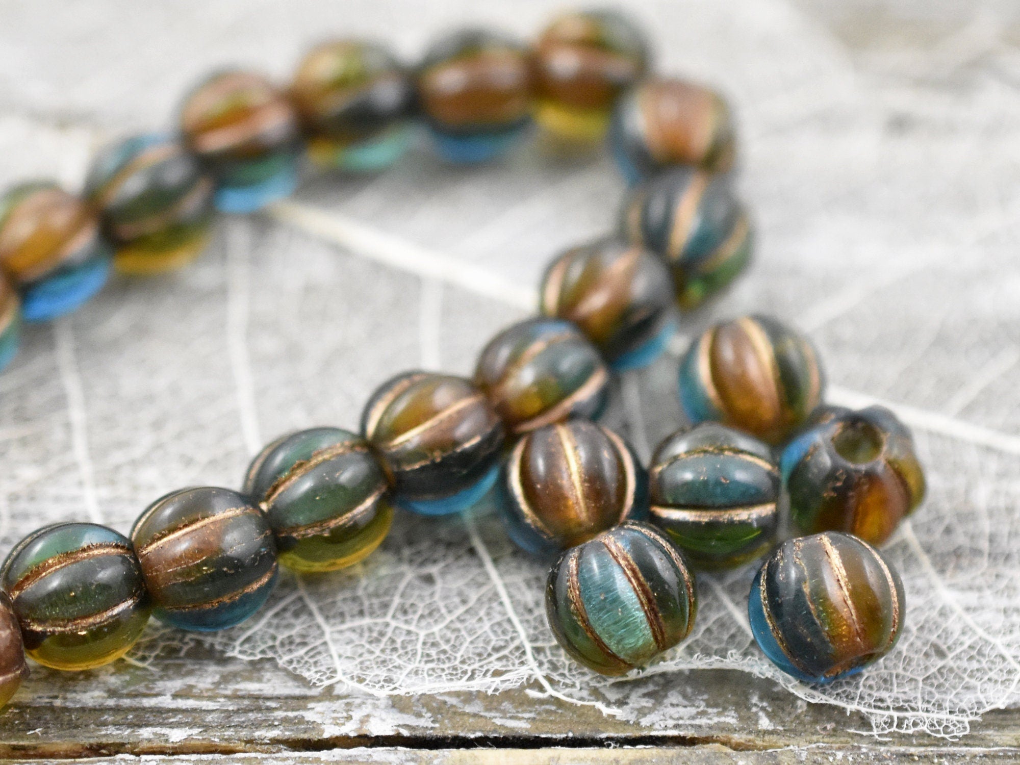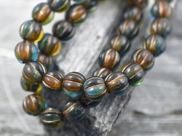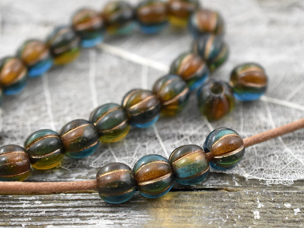 *20* 8mm Copper Washed Teal Amber Large Hole Melon Beads