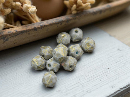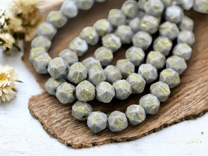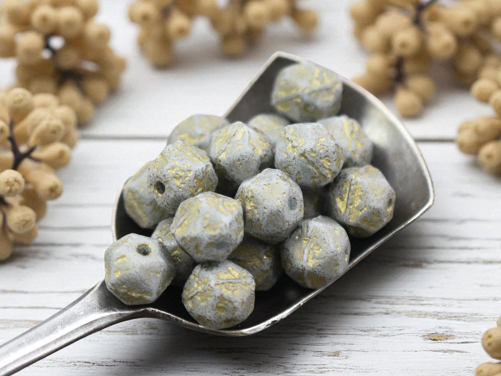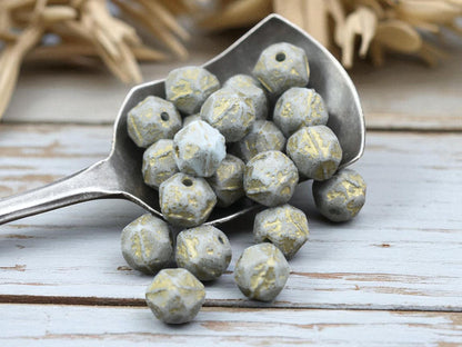 *20* 8mm Gold Etched Baby Blue Antique Cut Round Beads