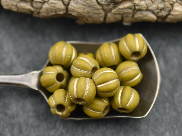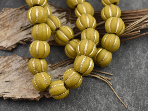 *20* 8mm Gold Washed Matte Yellow Gold Large Hole Melon Beads