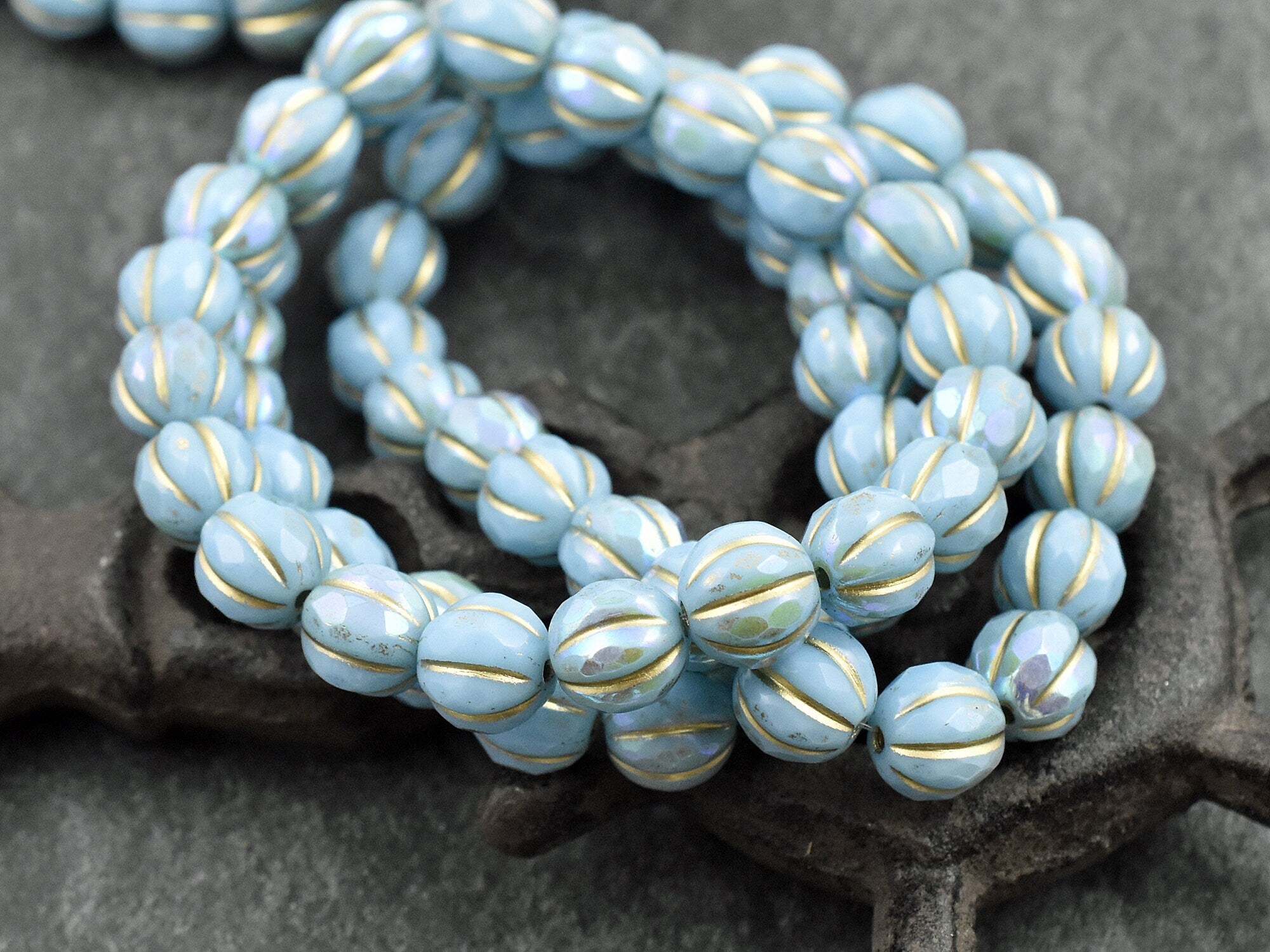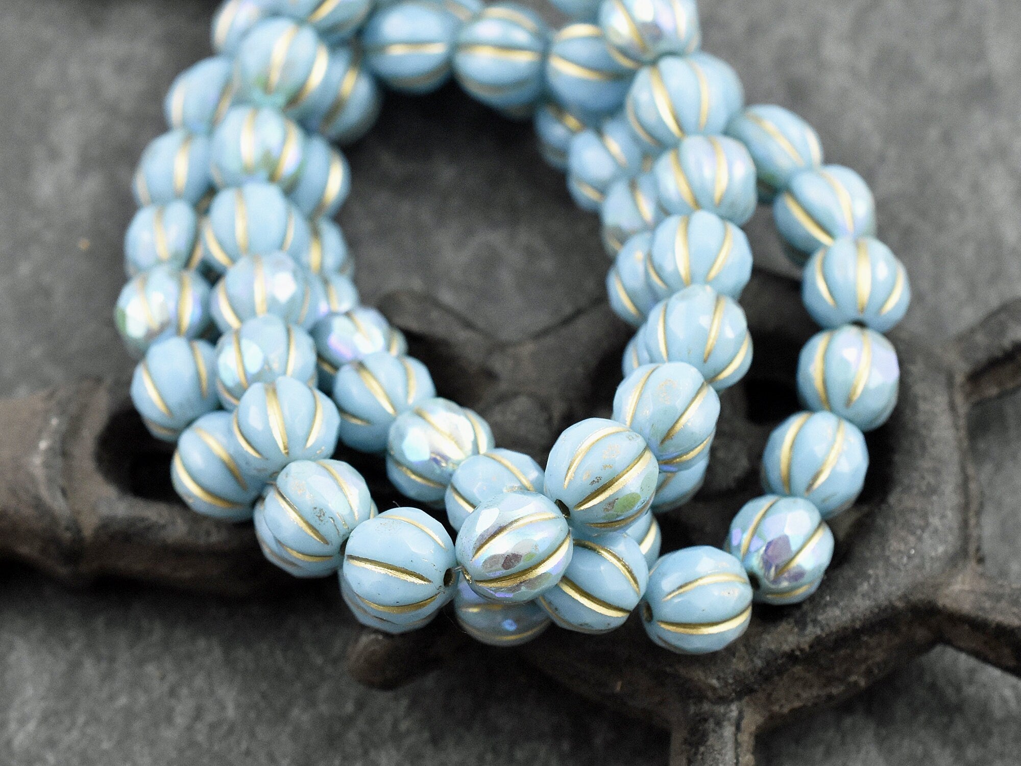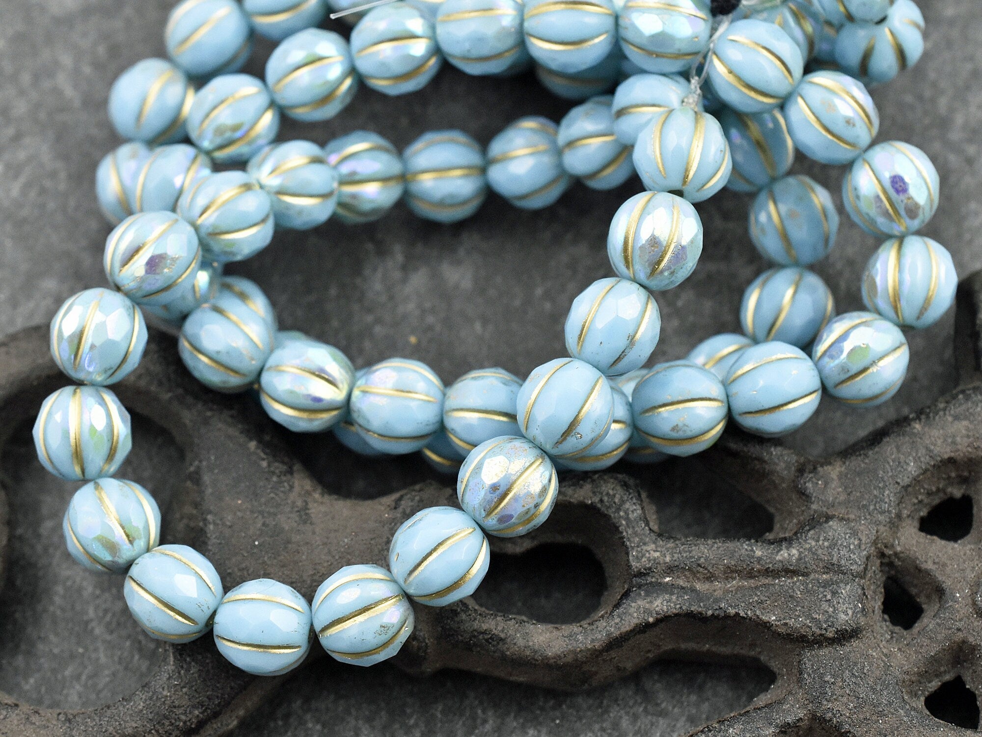 *20* 8mm Gold Washed Sky Blue AB Faceted Round Melon Beads