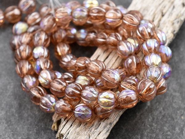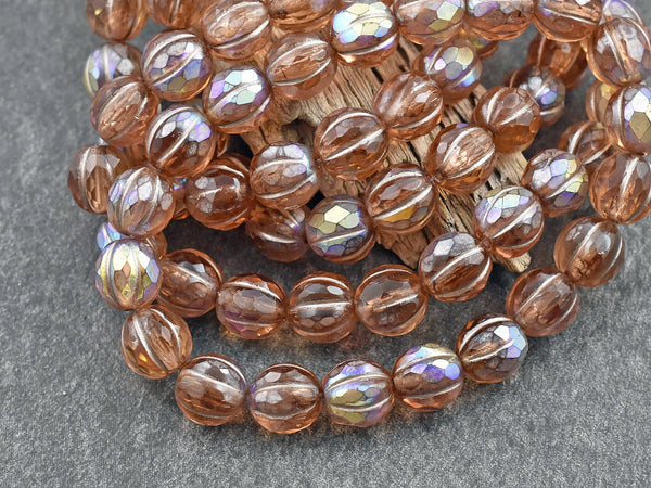 *20* 8mm Metallic Beige Washed Matte Peach AB Faceted Round Melon Beads
