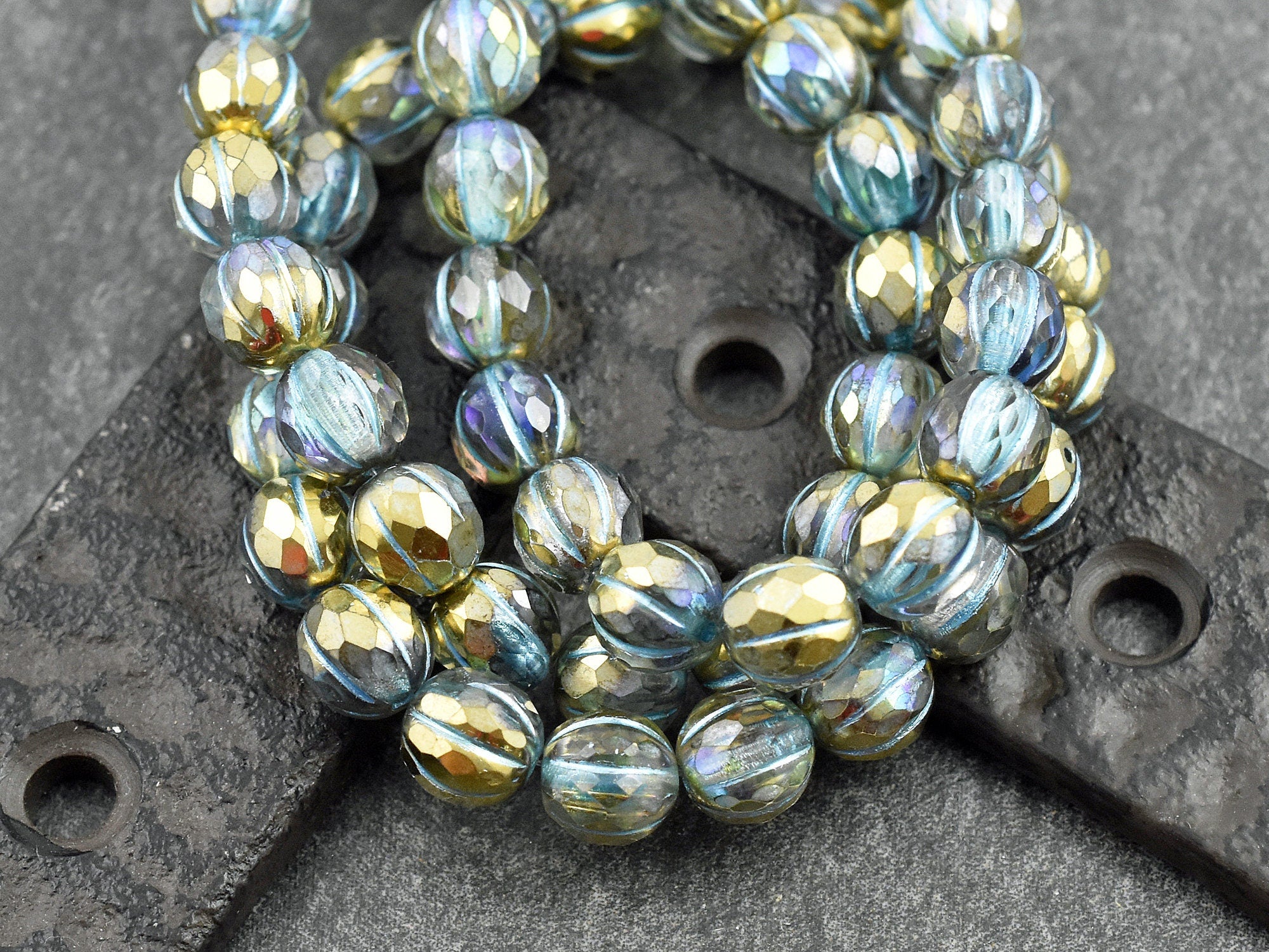 *20* 8mm Turquoise Washed Golden Crystal AB Faceted Round Melon Beads