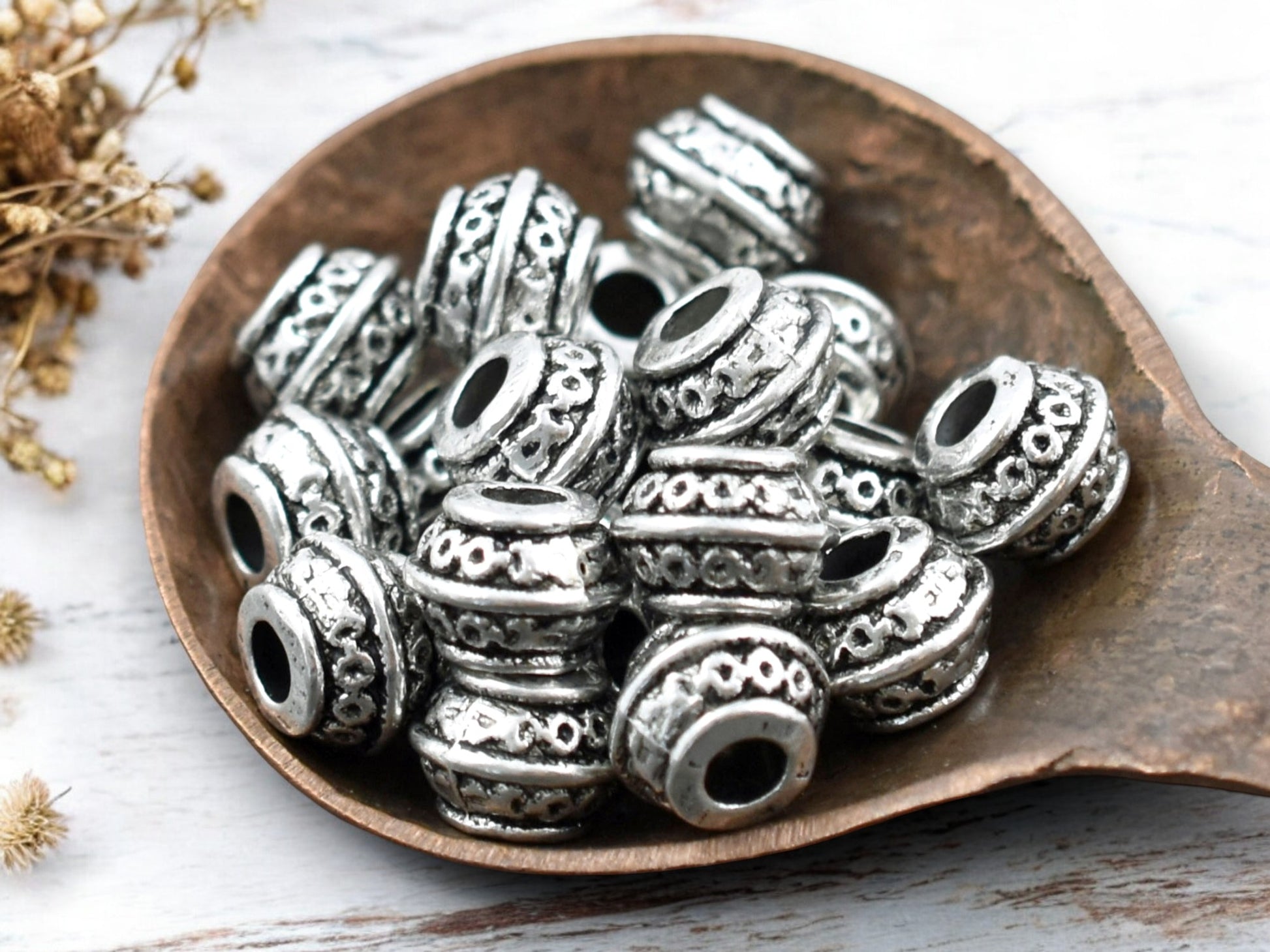 *50* 9x7mm Antique Silver Large Hole Barrel Beads
