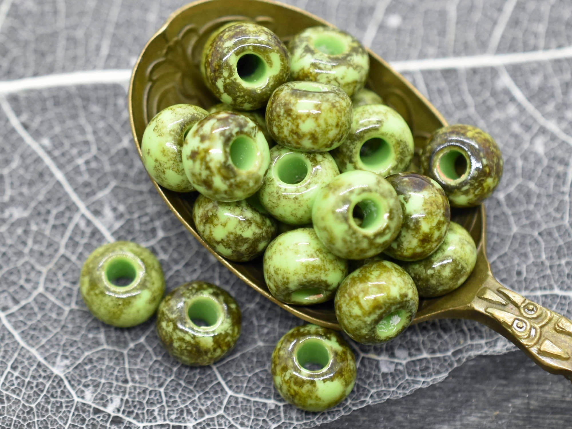 50G Opaque Green Apple Picasso Czech 32/0 Seed Beads