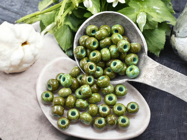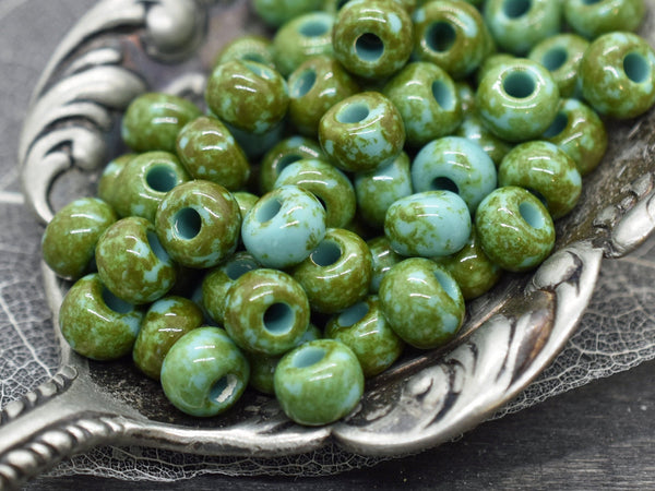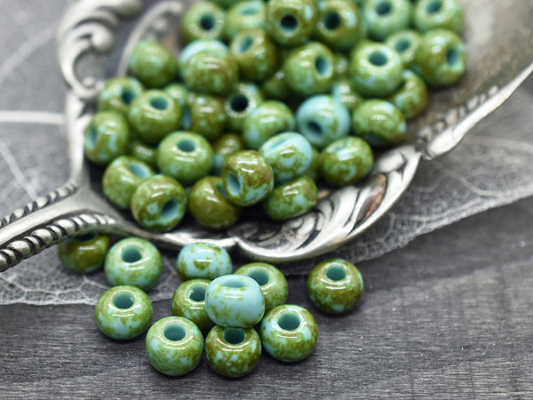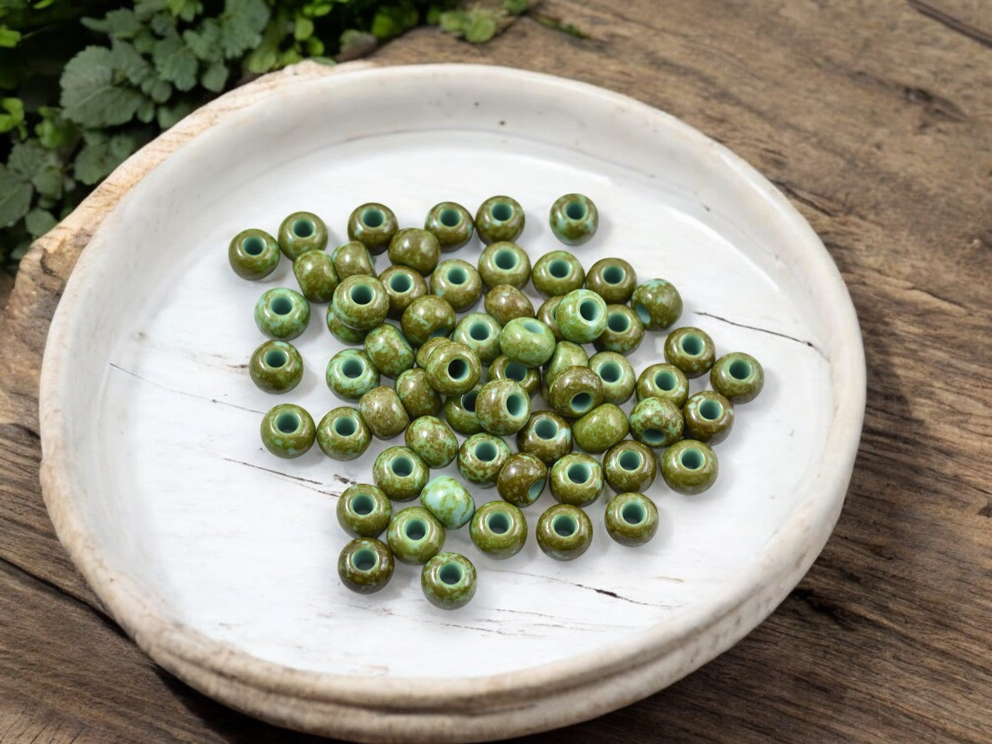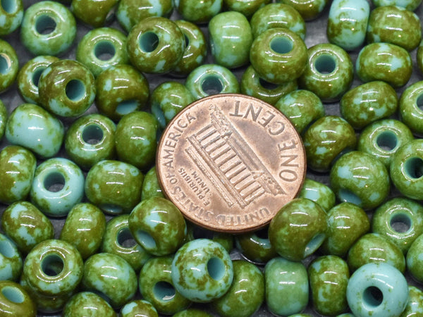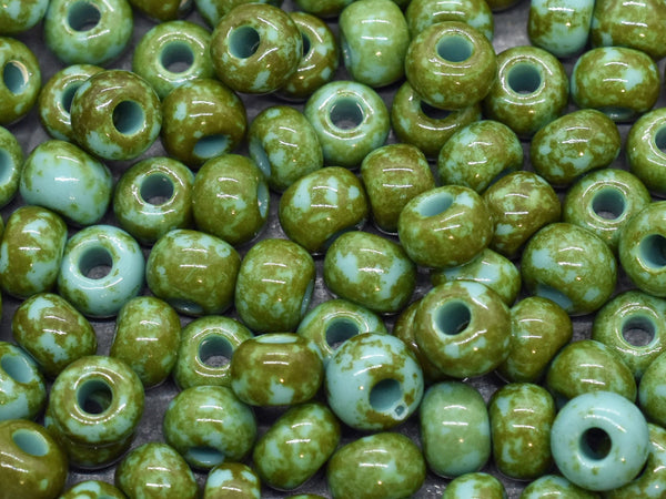 50G Opaque Turquoise Picasso Czech 32/0 Seed Beads
