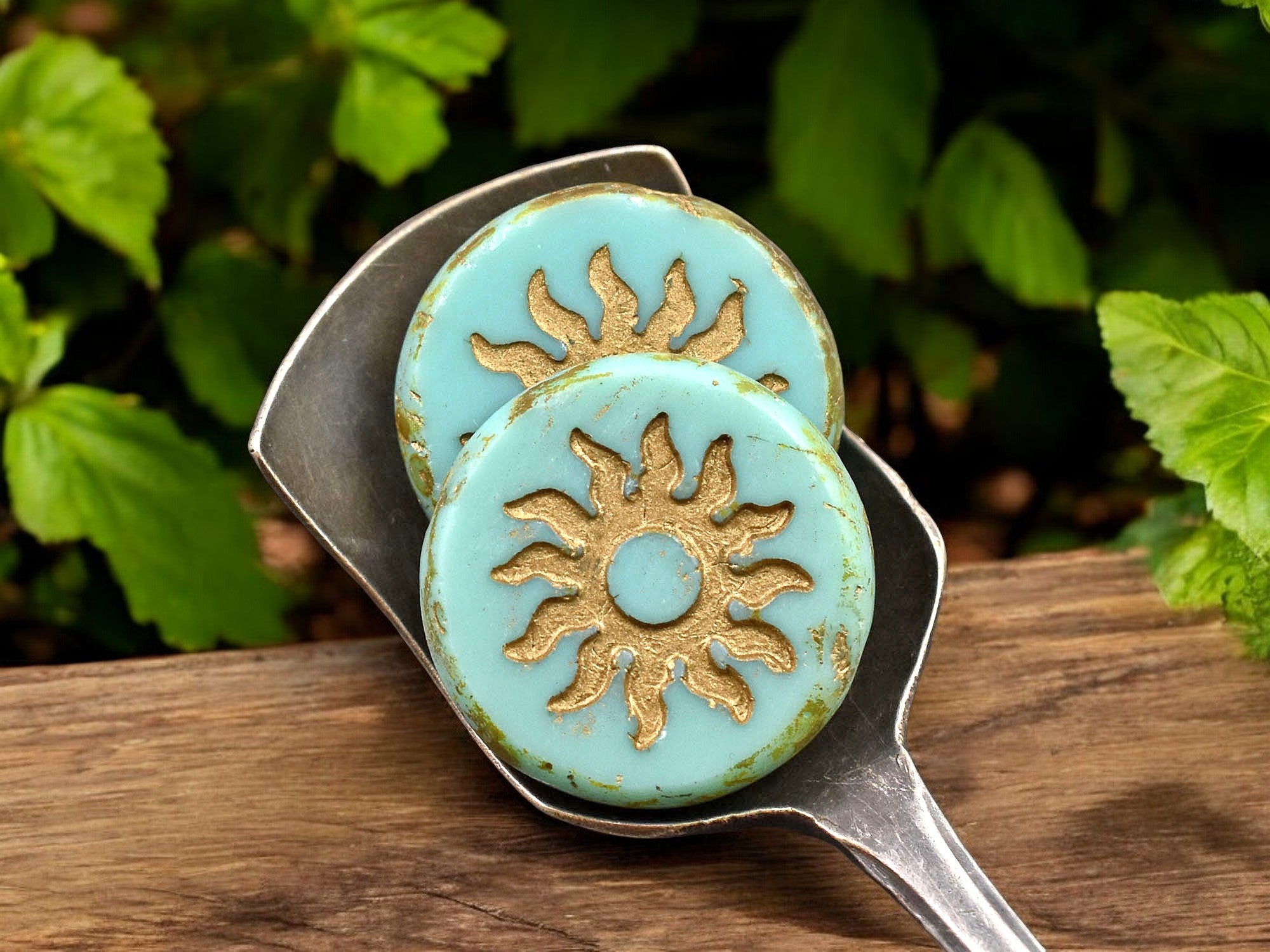 ♥ Type/Shape: Czech glass coin focal bead with sun design (on both sides of bead)