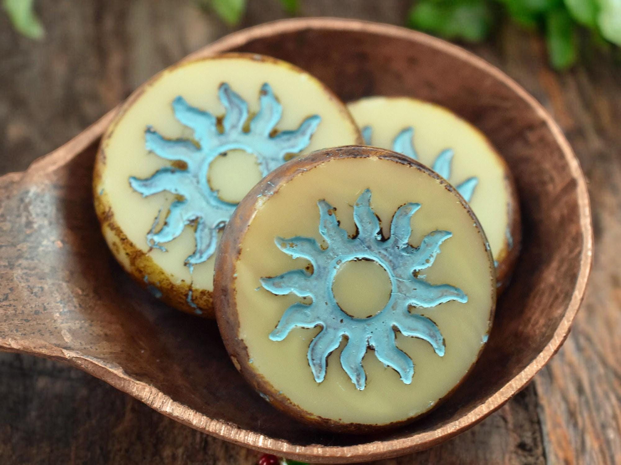 ♥ Type/Shape: Czech glass coin focal bead with sun design (on both sides of bead)