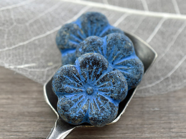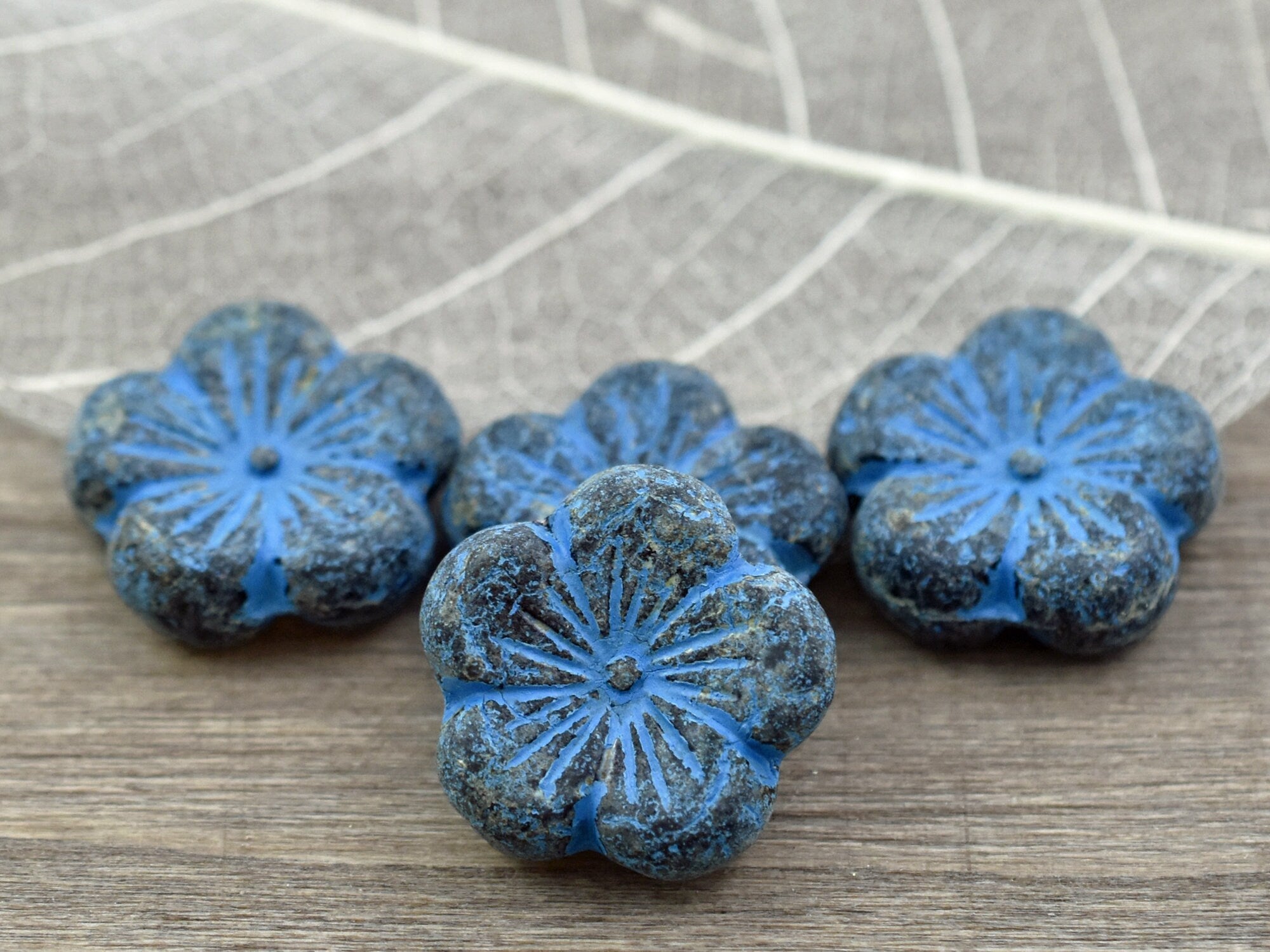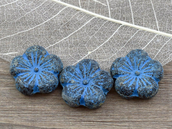 21mm Turquoise Washed Etched Jet Picasso Hibiscus Flower Beads - 2 Beads