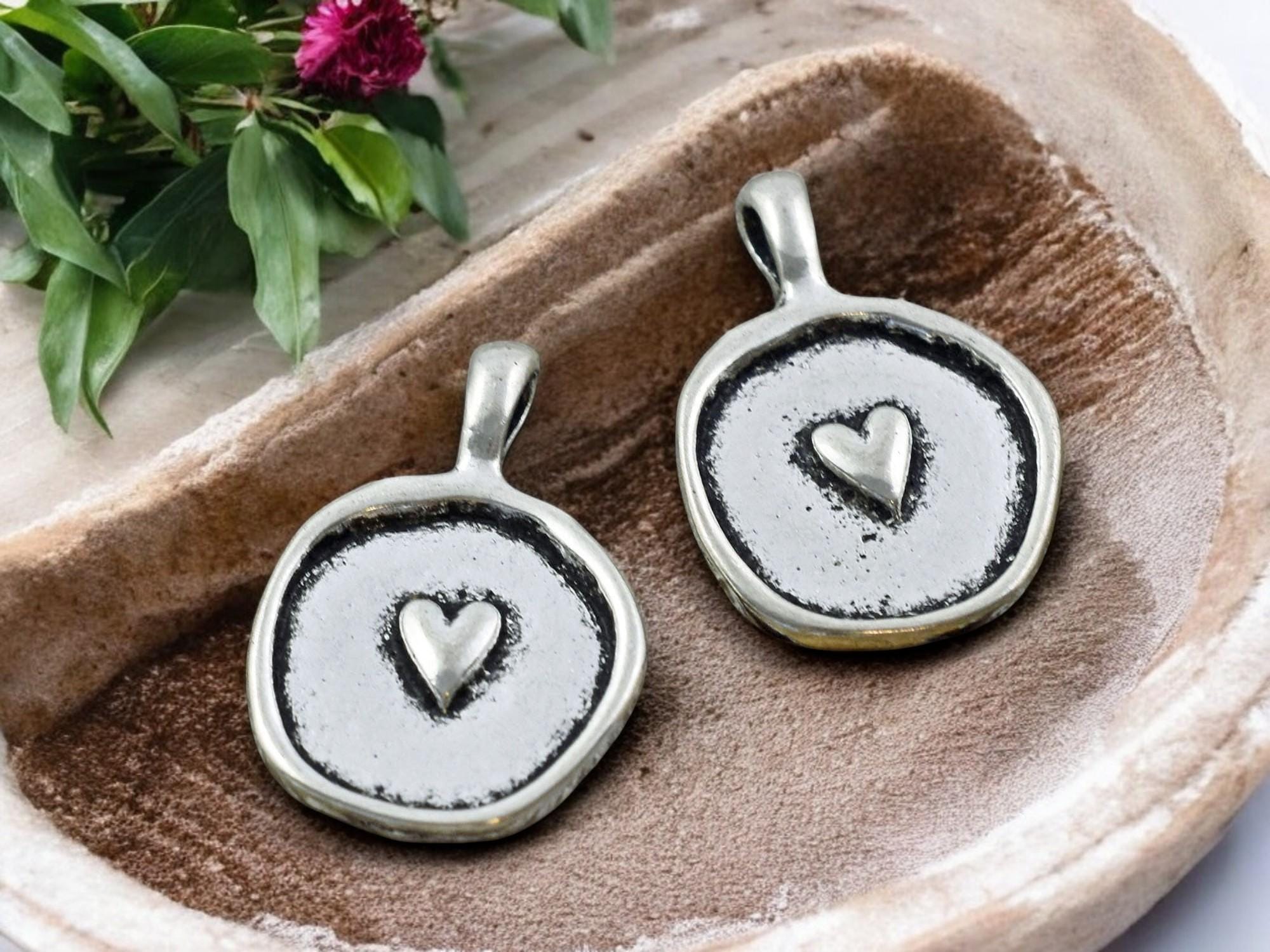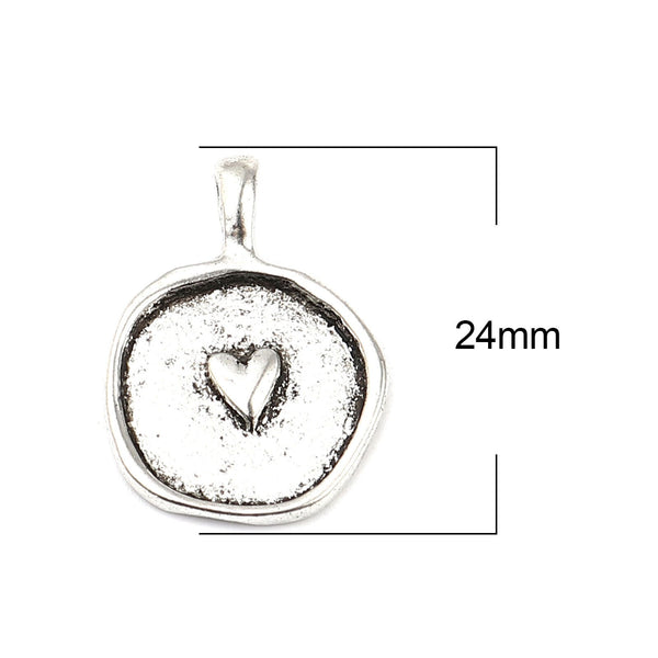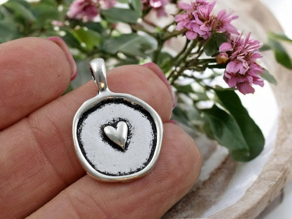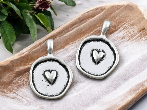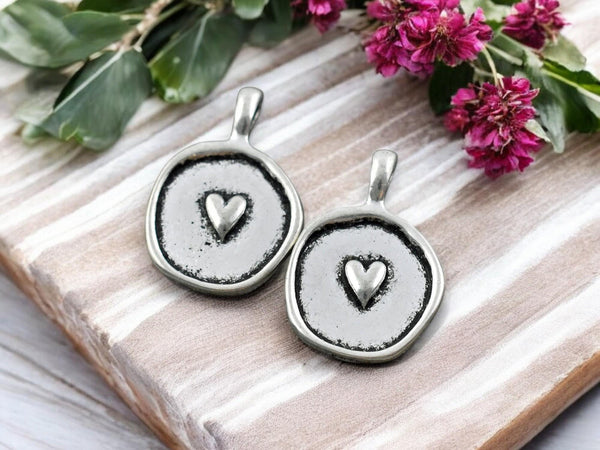 24x17mm Antique Silver Heart Wax Seal Charms - 10pcs
