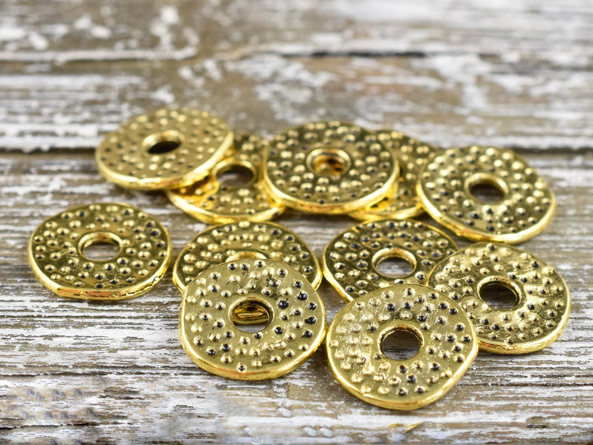 *100* 12mm Antique Gold Dimpled Flat Washer Spacer Beads