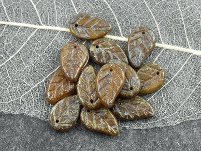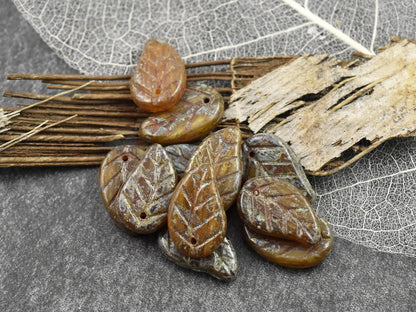 *25* 15x9mm Mixed Burnt Orange Opal Picasso Luster Top Hole Leaf Beads