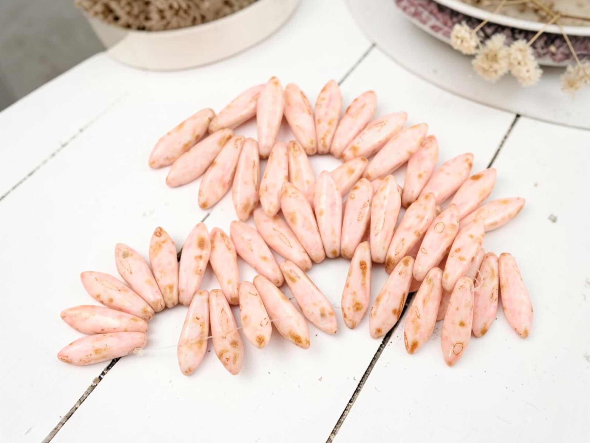 *25* 5x16mm Pink Marble Picasso Dagger Beads