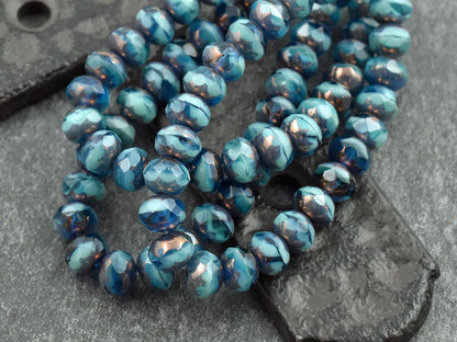 *25* 5x7mm Bronze Washed Blended Pacific Blue Turquoise Fire Polished Rondelle Beads