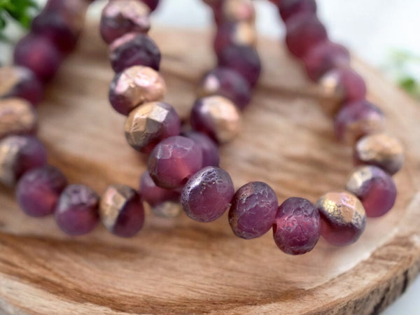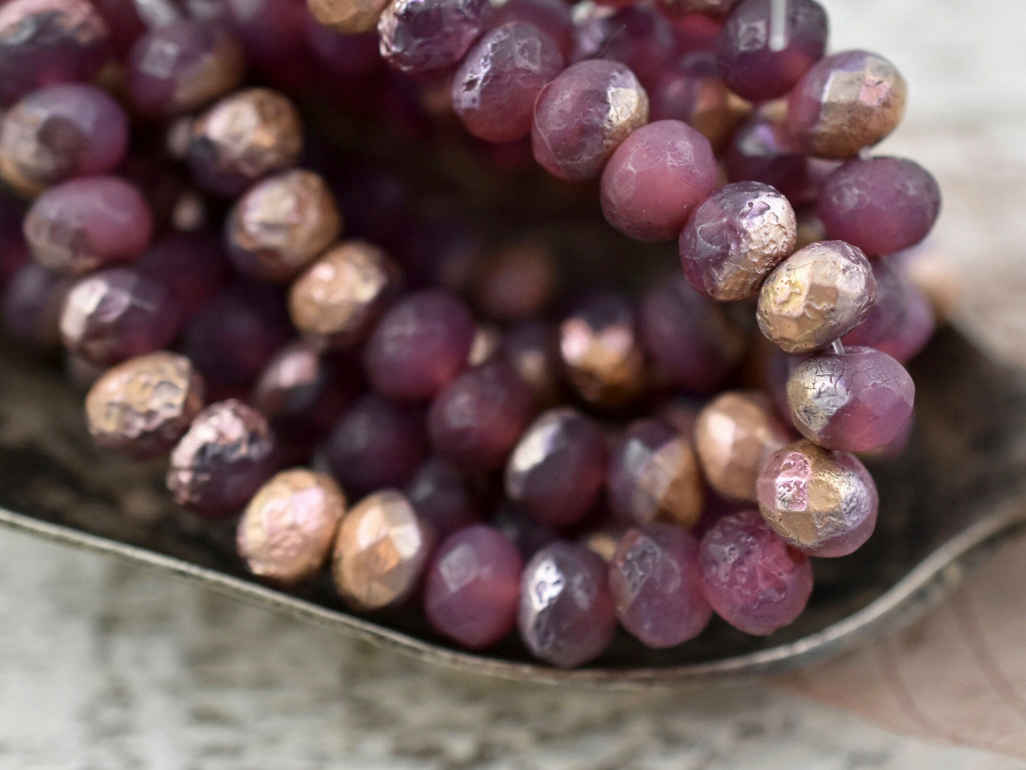 *25* 5x7mm Copper Etched Matte Dusty Rose Pink Fire Polished Rondelle Beads