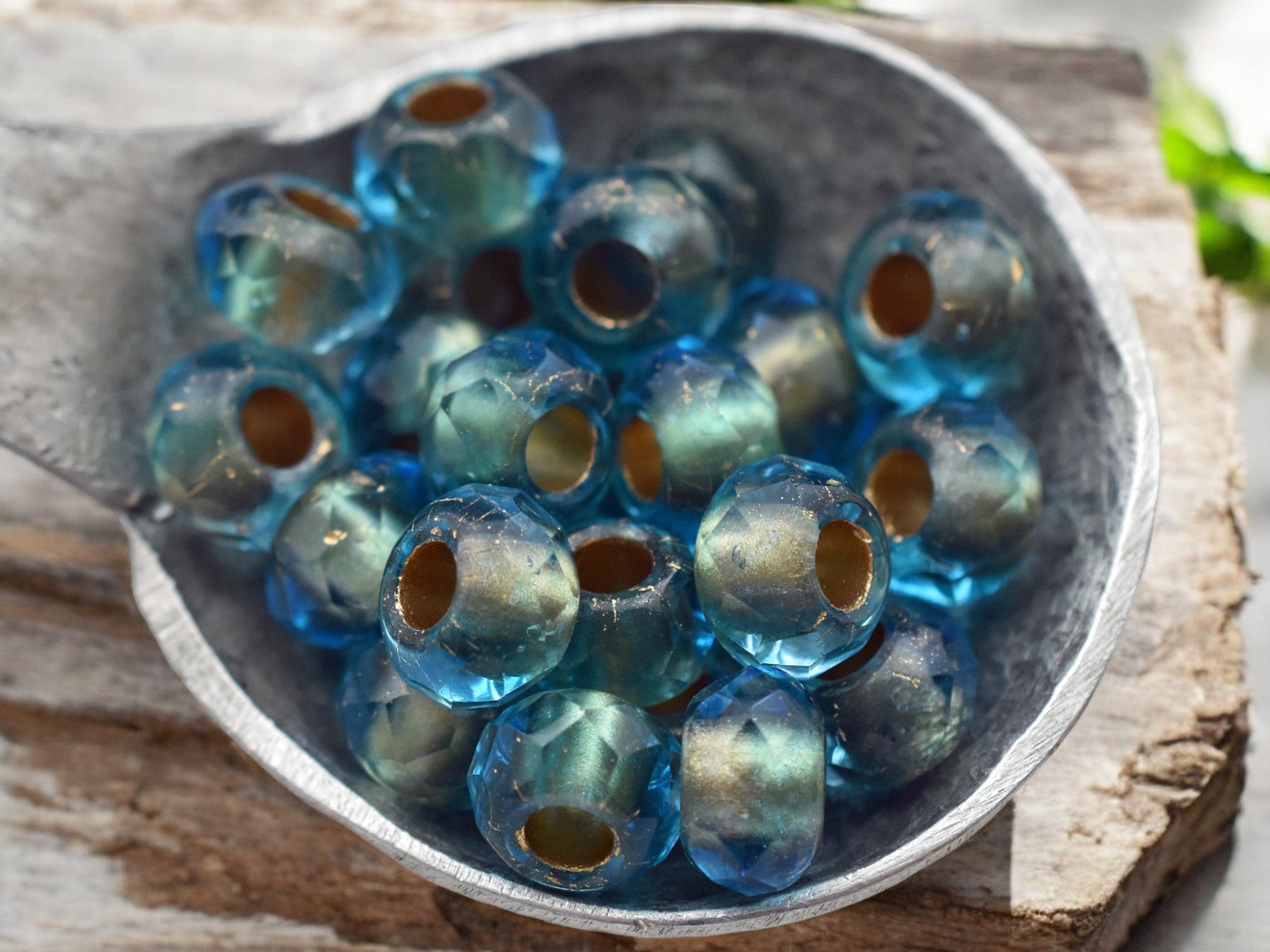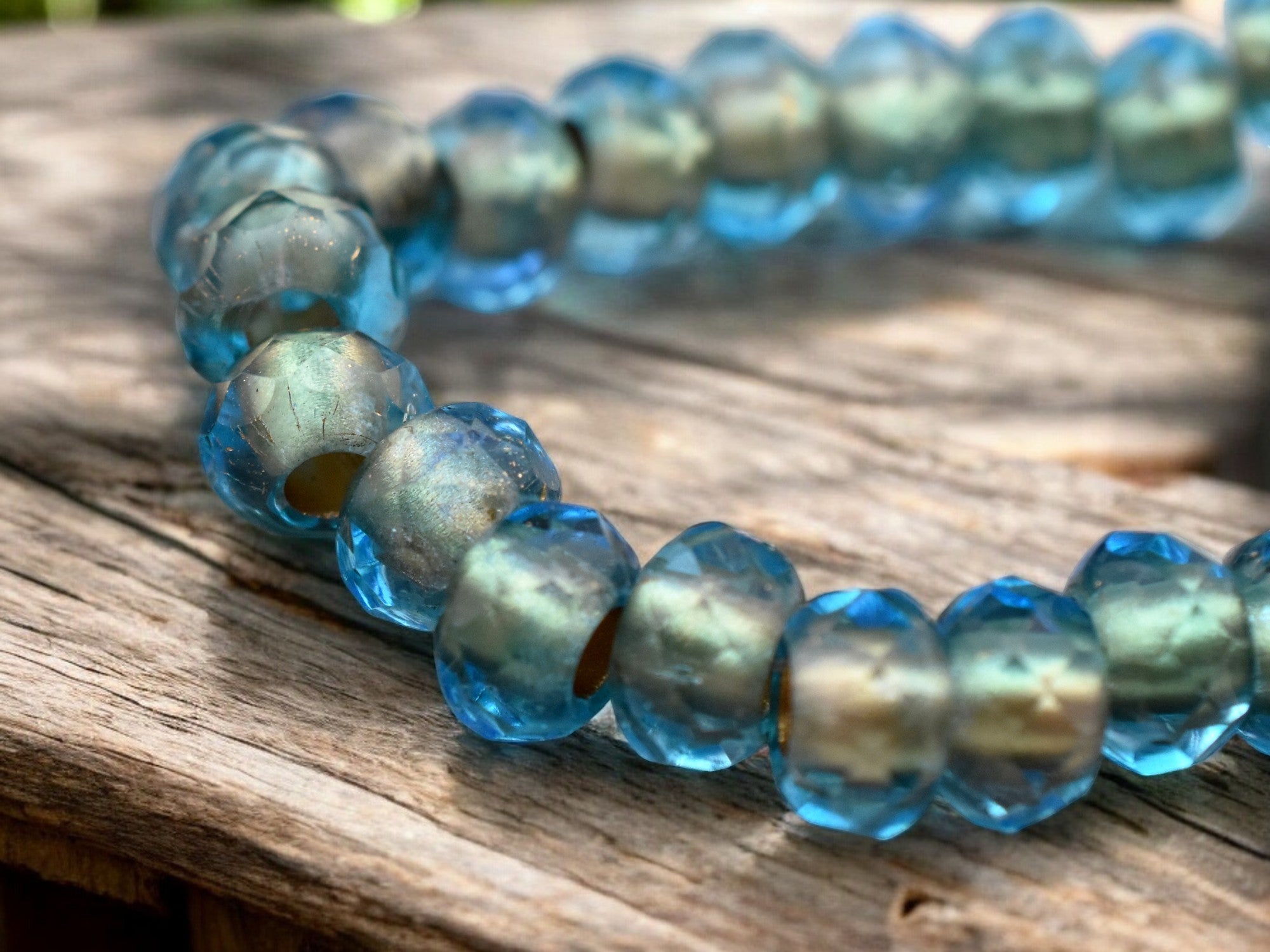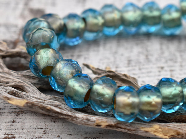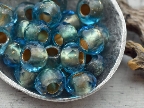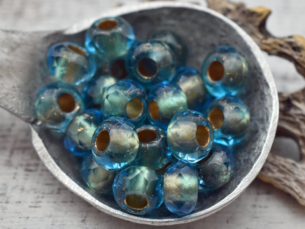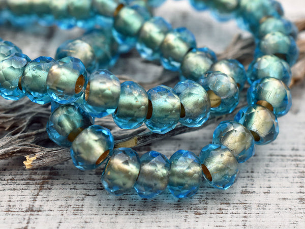 *25* 5x8mm Gold Lined Capri Blue Faceted Large Hole Rondelle Roller Beads