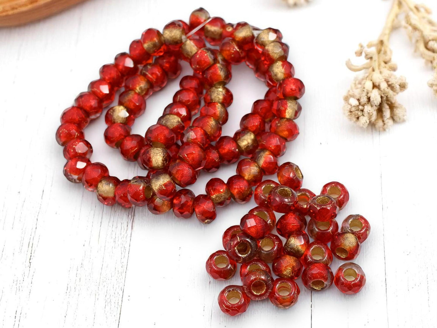*25* 5x8mm Gold Lined Ruby Red Faceted Large Hole Rondelle Roller Beads