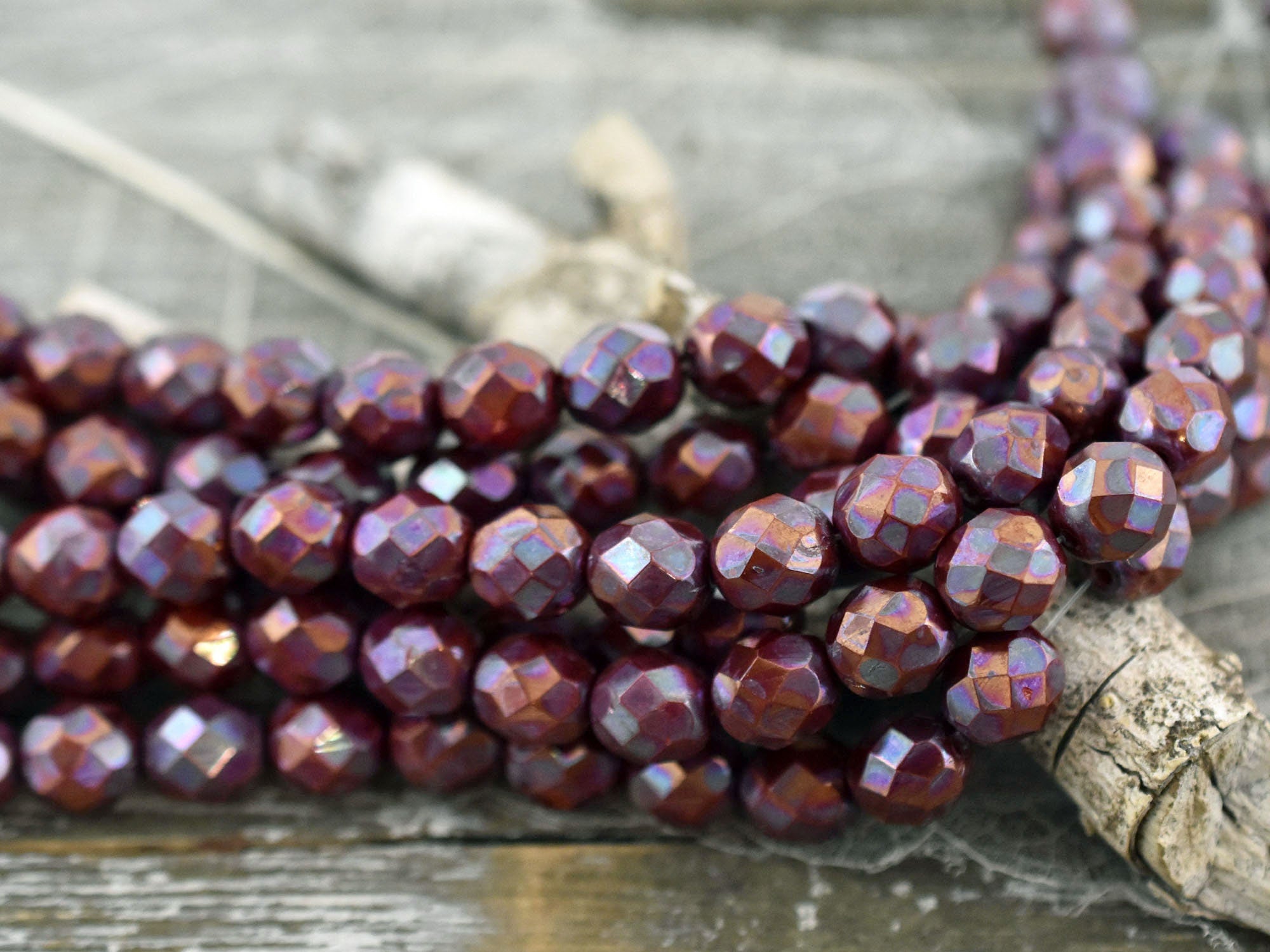 *25* 6mm Burgandy Nebula Fire Polished Round Beads