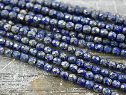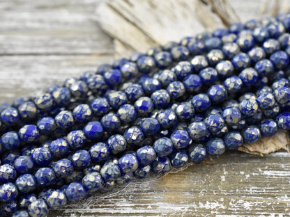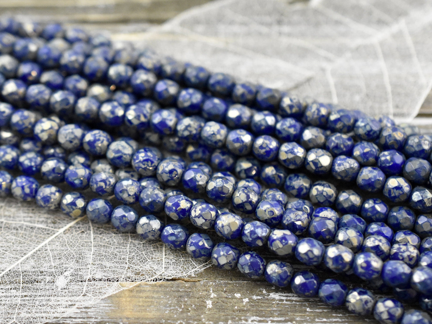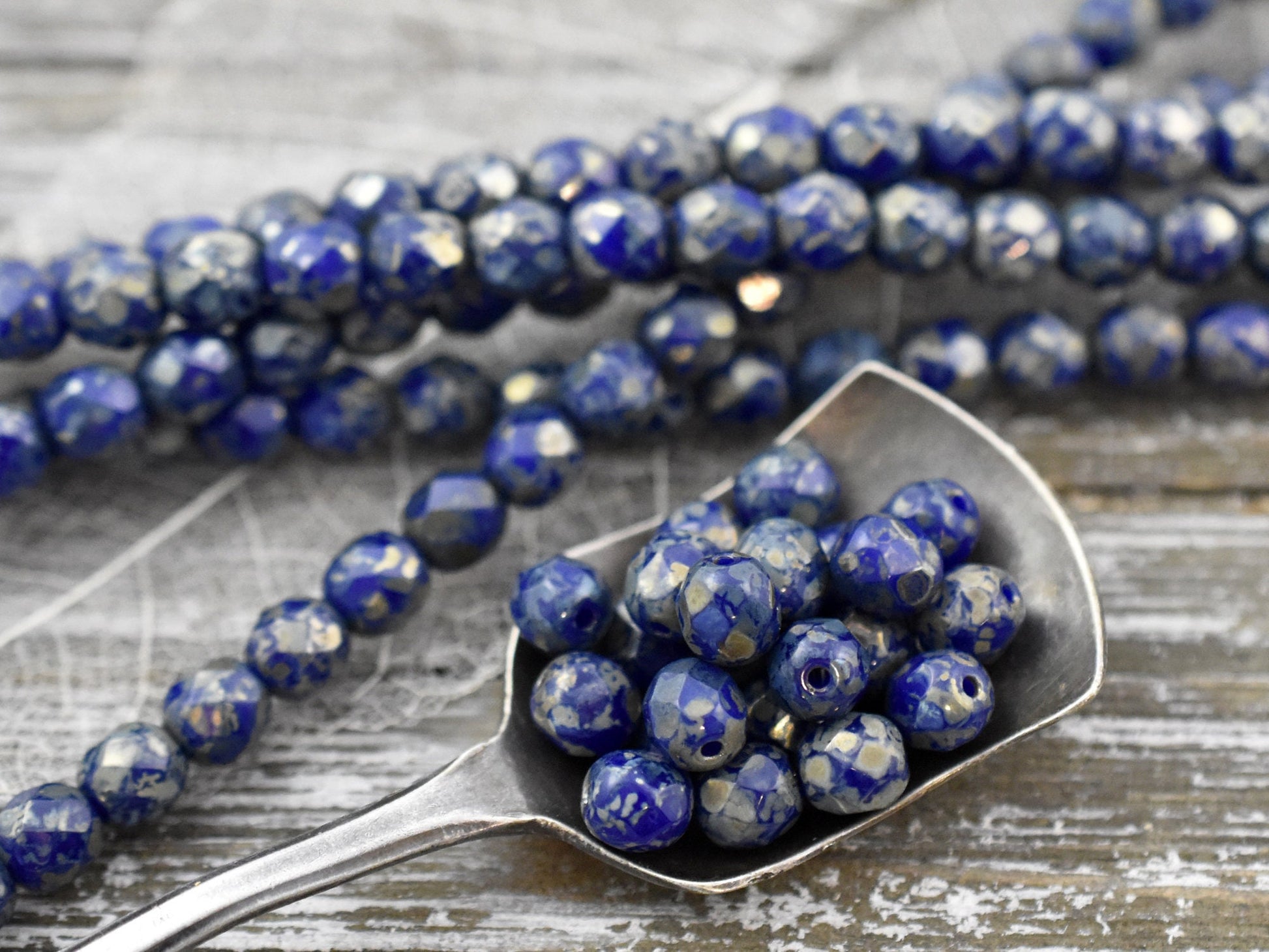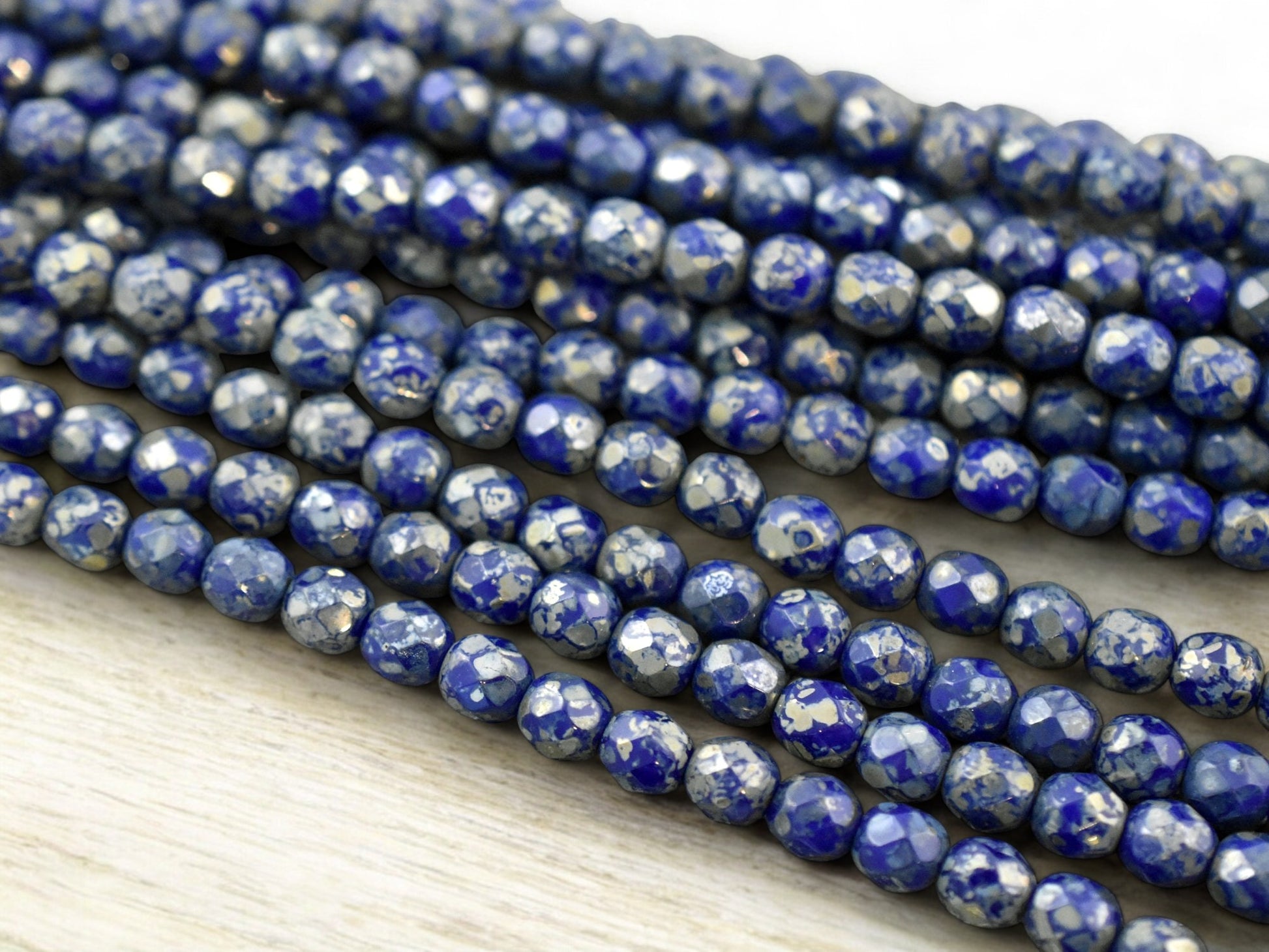 *25* 6mm Cobalt Blue Silver Travertine Fire Polished Round Beads