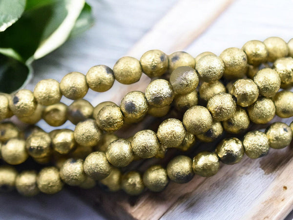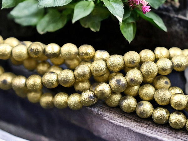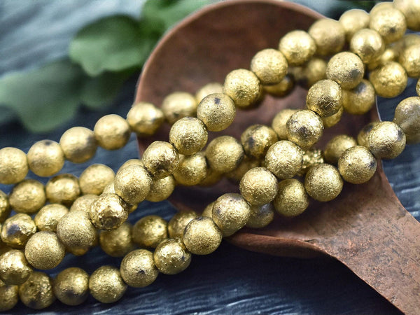 *25* 6mm Etched Gold Ore Round Druk Beads