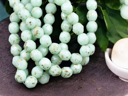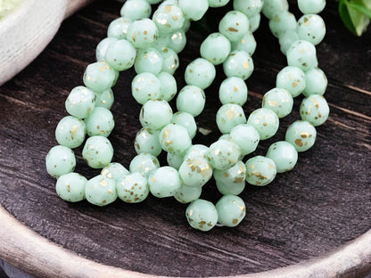*25* 6mm Gold Speckled Mint Green Fire Polished Round Beads