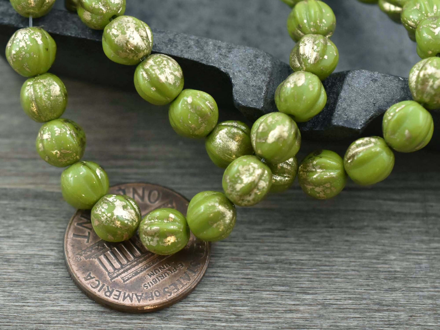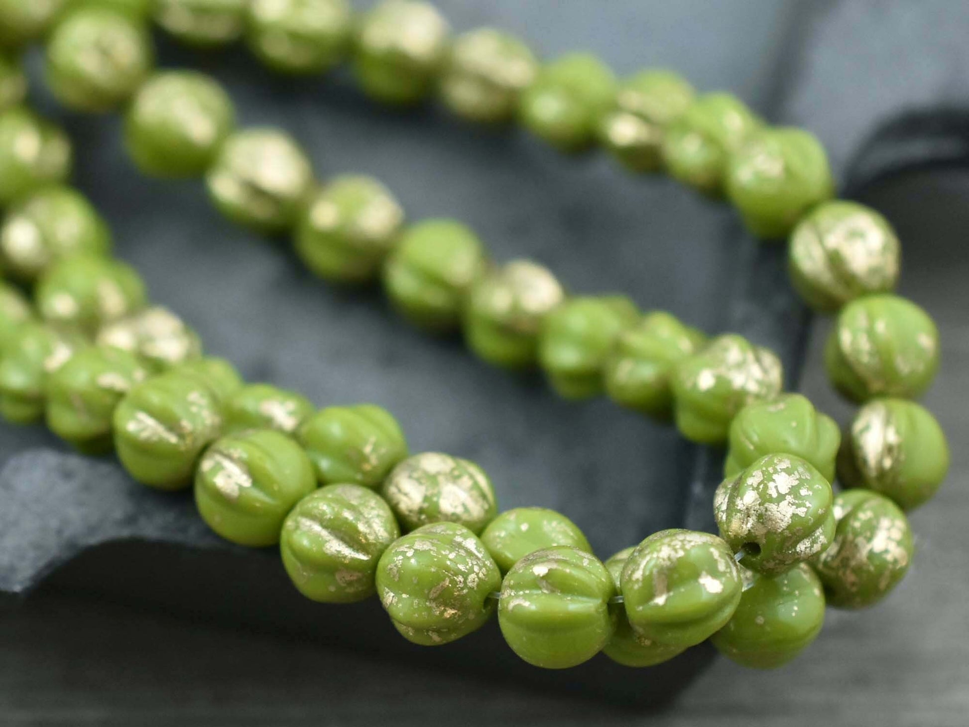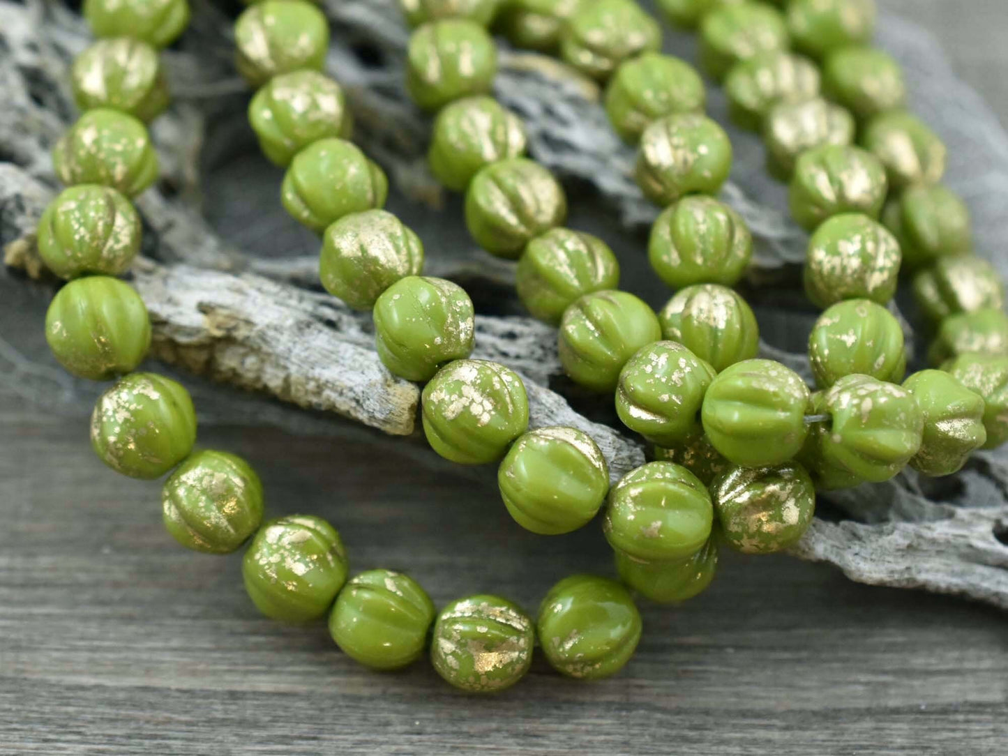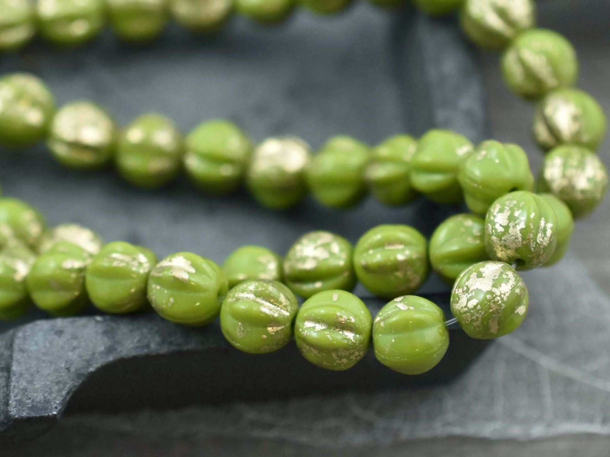 *25* 6mm Gold Washed Chartreuse Fluted Round Melon Beads