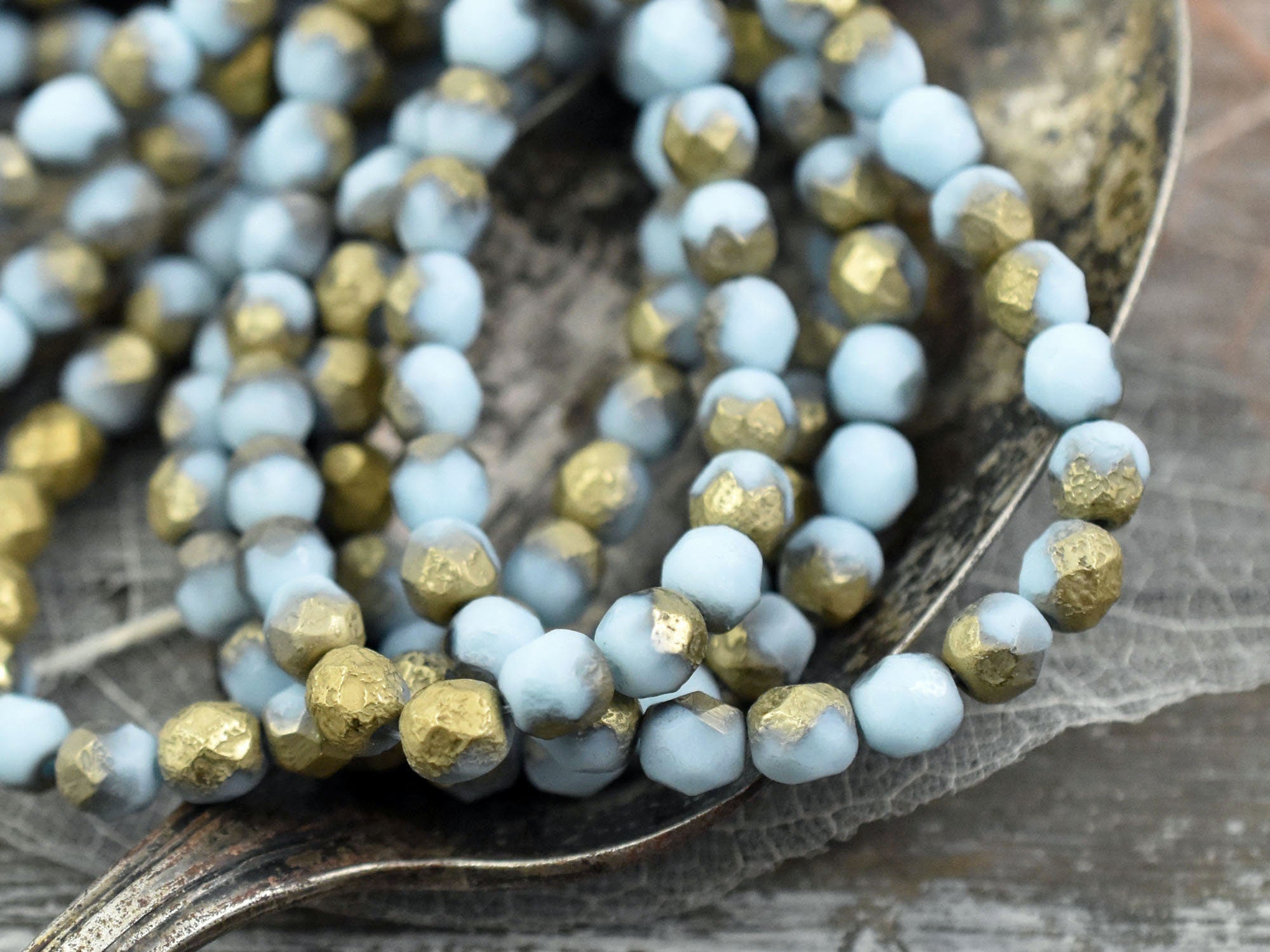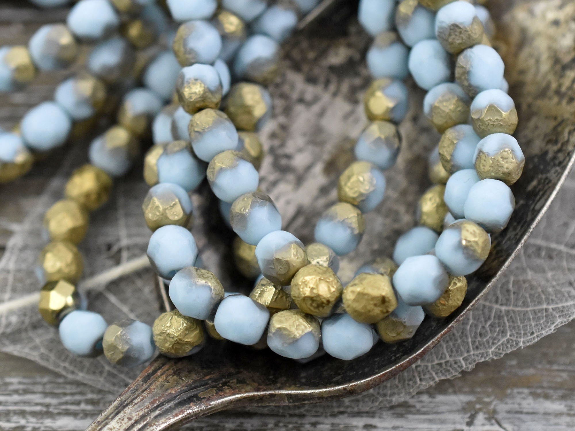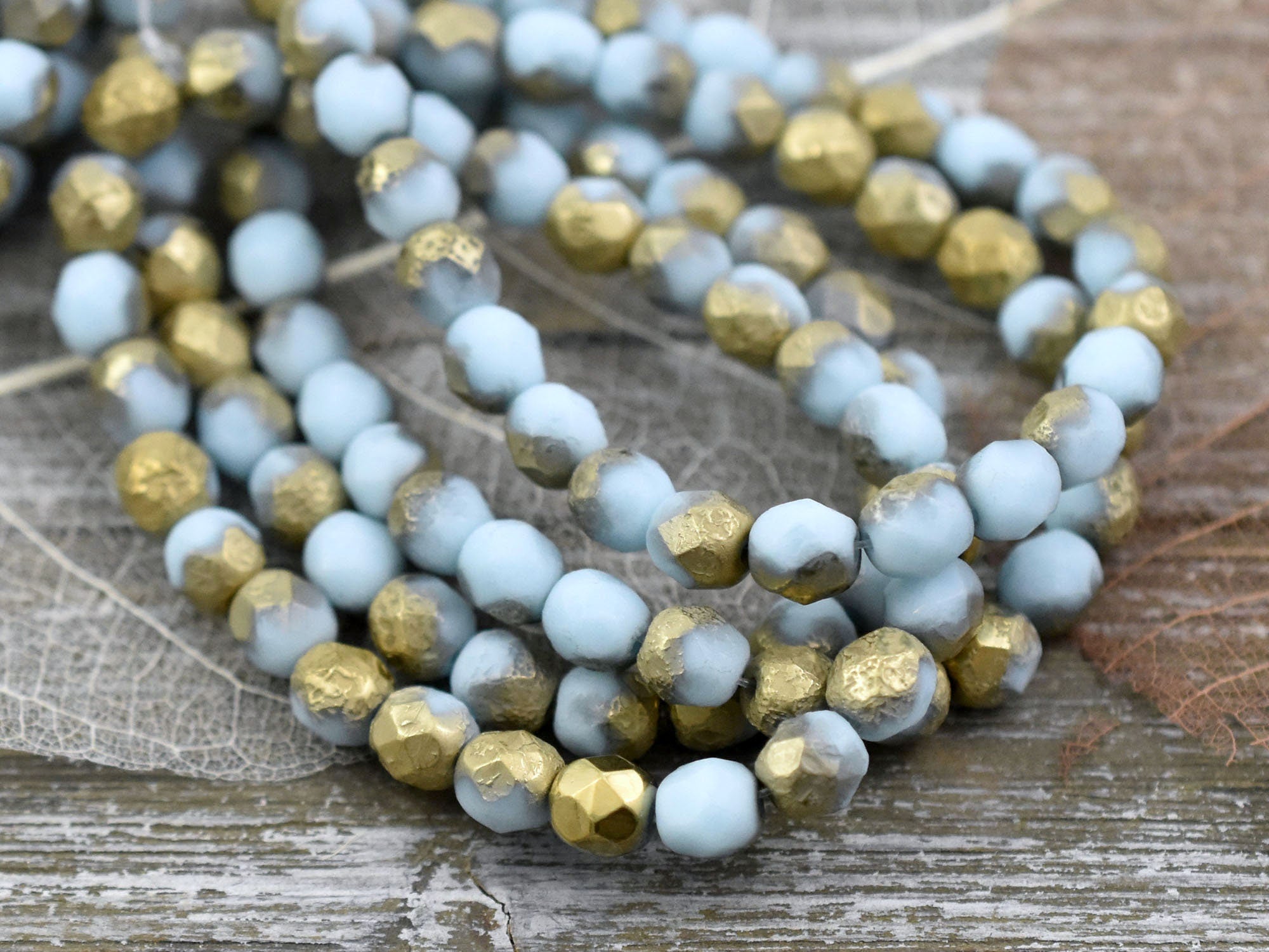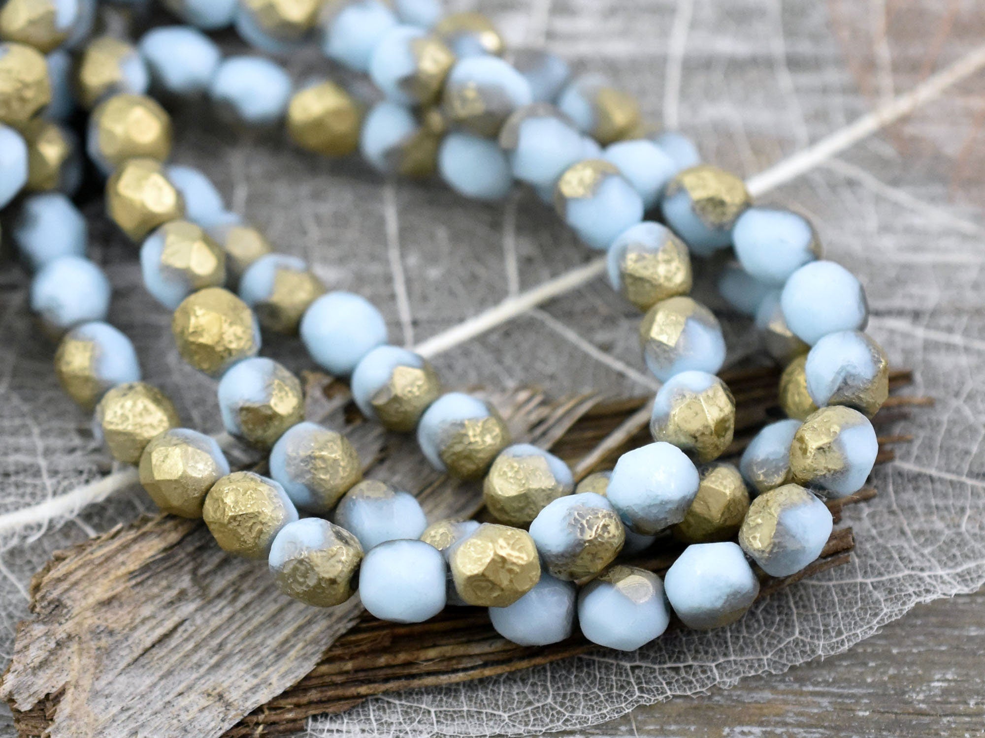 *25* 6mm Gold Washed Etched Sky Blue Fire Polished Round Beads
