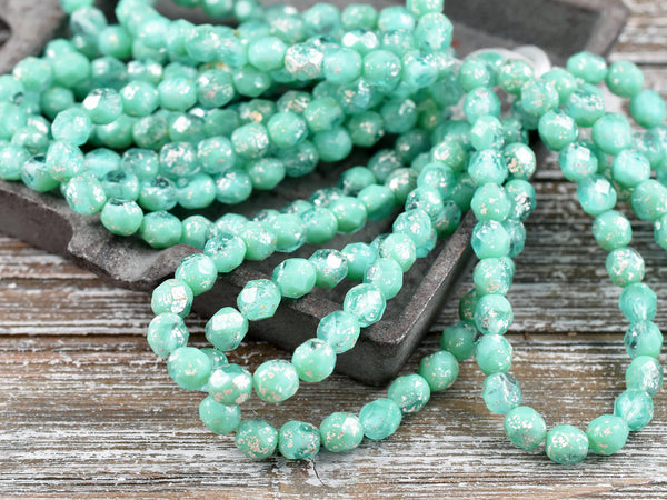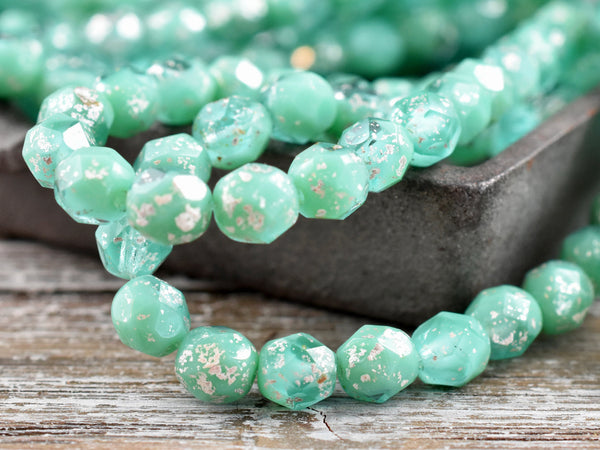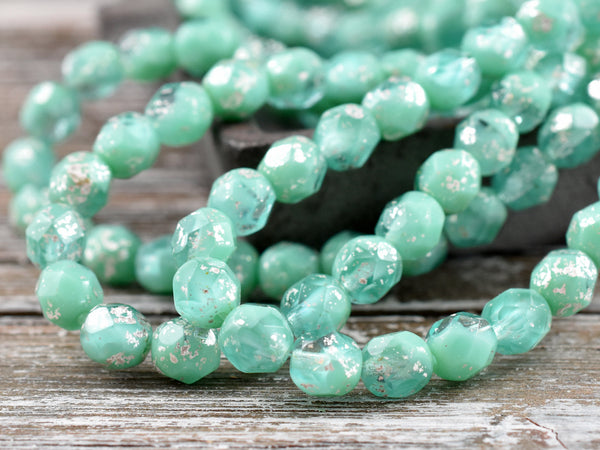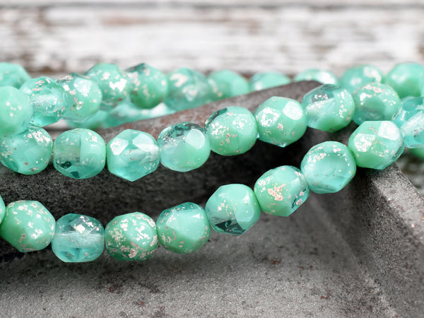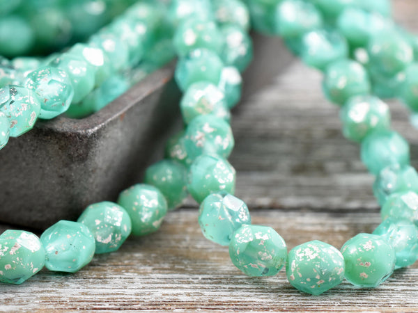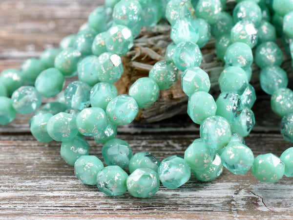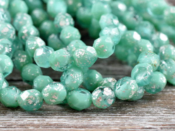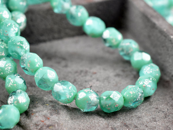 *25* 6mm Silver Mercury Washed Pale Green Turquoise Fire Polished Round Beads