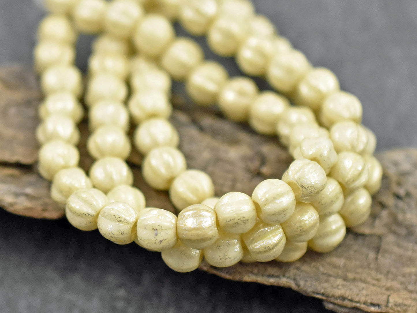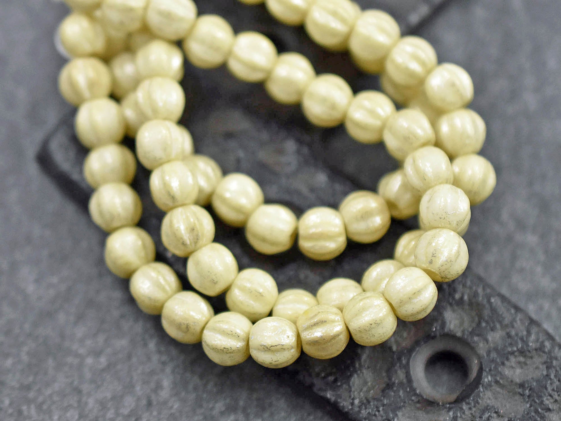 *25* 6mm Silver Mercury Washed Ivory Luster Large Hole Melon Beads