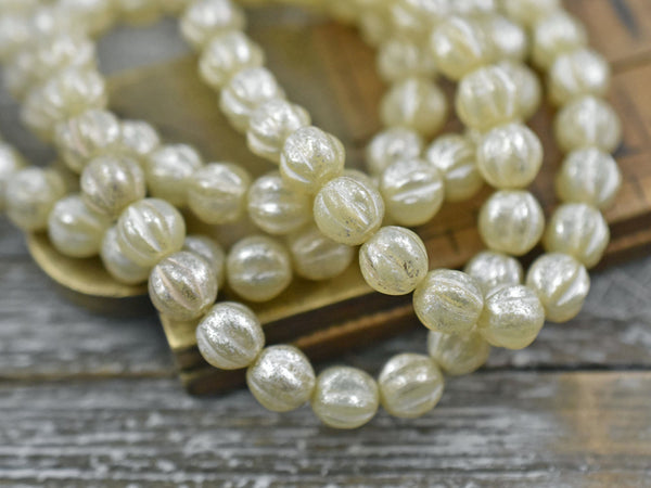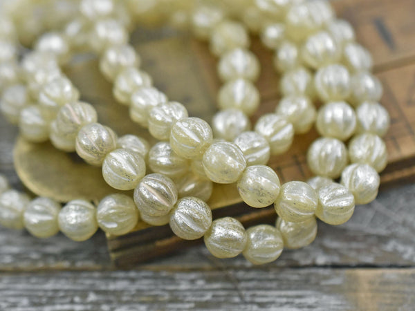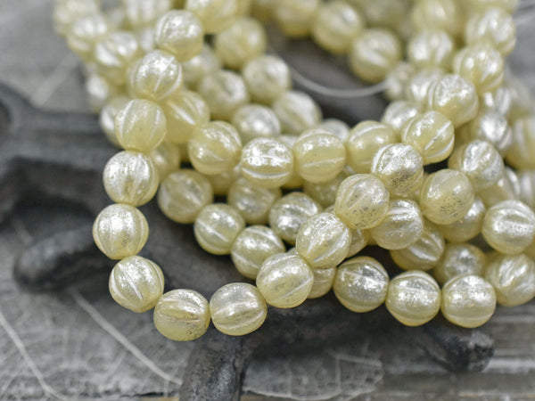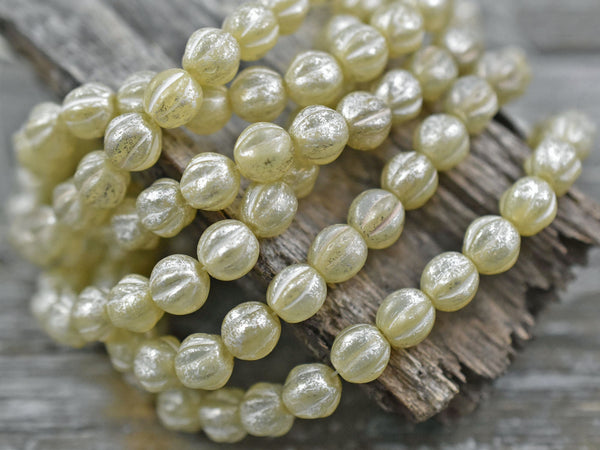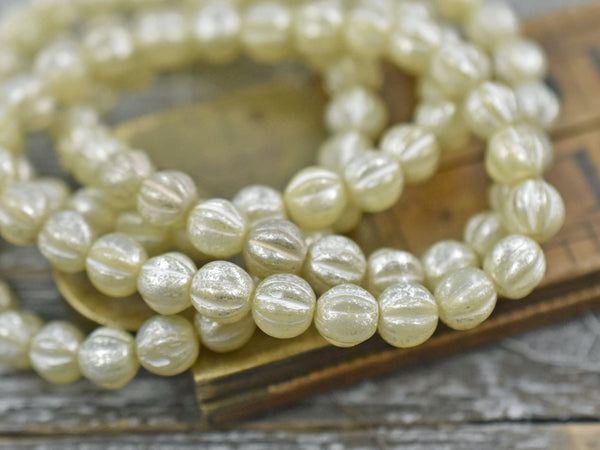 *25* 6mm Silver Mercury Washed Ivory Opal Fluted Round Melon Beads